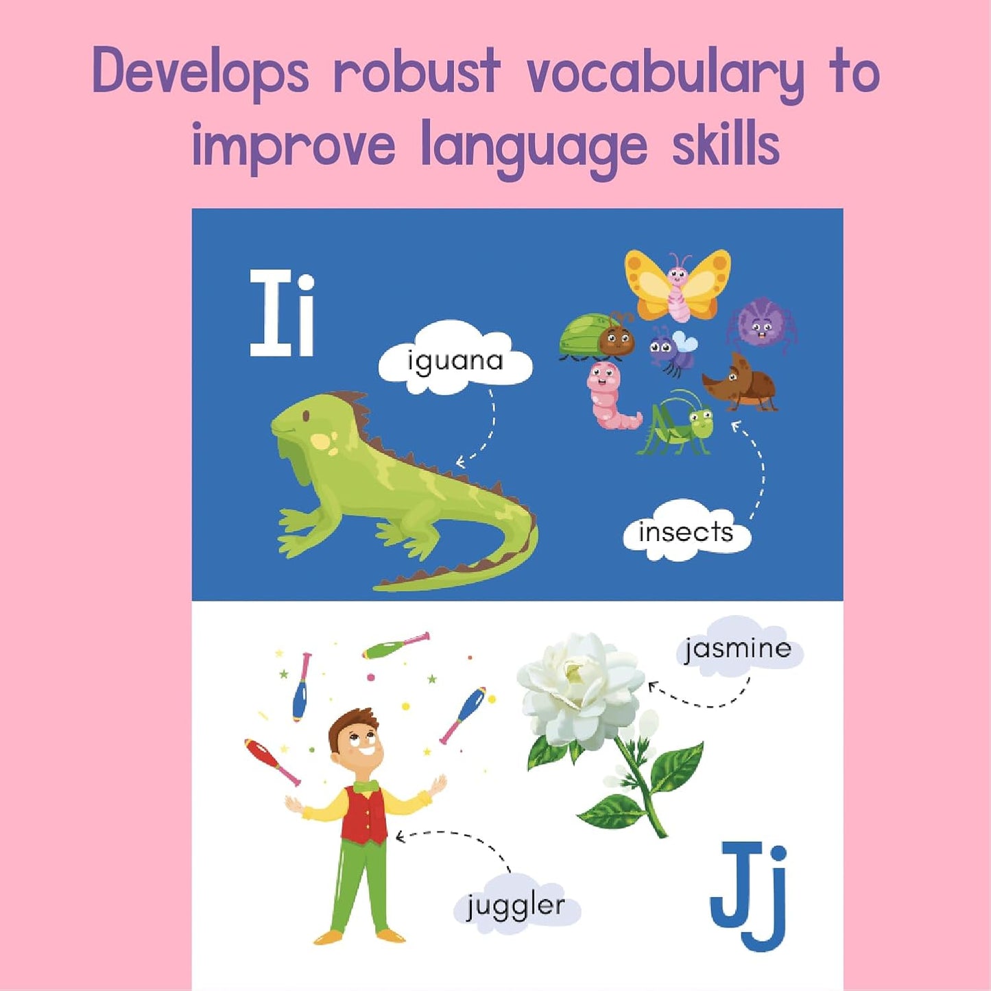An ideal book that marks the beginning of kids' learning journey and introduces them to basic concepts such as the English alphabet, colors and shapes. There are 100 familiar words to learn in this delightfully illustrated book. A fantastic way to build vocabulary and develop word-picture association skills.