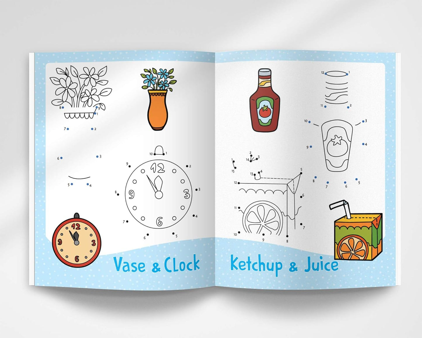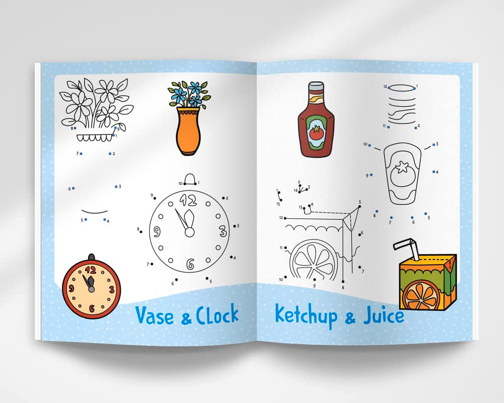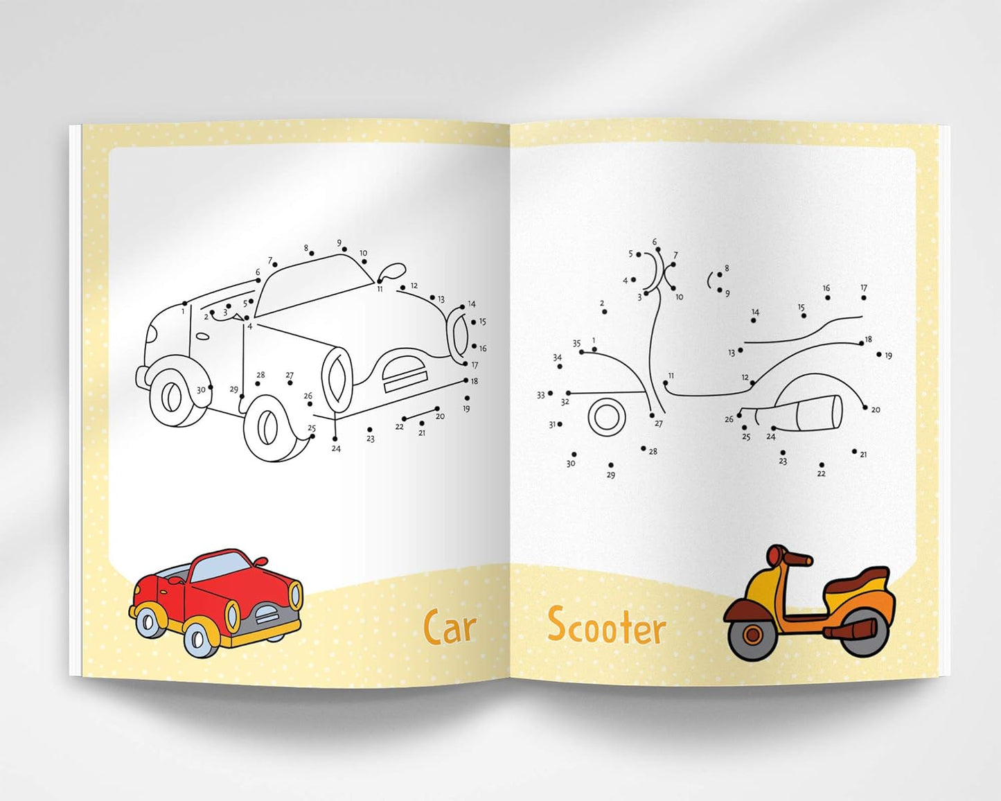 An entertaining and engaging book for the little ones to enjoy drawing outlines by following the dots and coloring the final picture. The amazing pictures hidden behind the dots will kindle the curiosity of children and will give them hours of coloring fun.