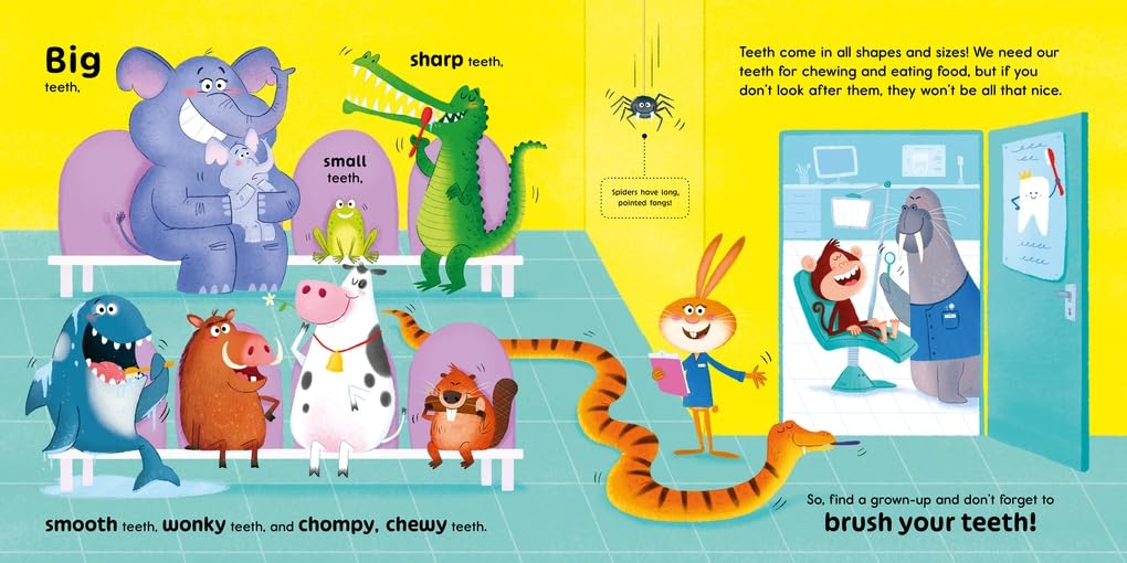 There are 101 ways to brush your teeth packed into the pages of this funny and totally ridiculous but REALLY helpful book. With tips on how to brush your teeth and fun facts about animals' real teeth throughout, this book will help help little readers get their teeth sparkling.