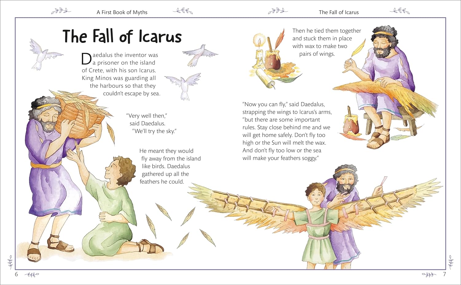 A First Book of Myths contains fourteen well-known myths accompanied by delightful illustrations. From the story of Icarus – the boy who flew too close to the Sun – to the tale of why dogs dislike cats, this enthralling collection is the perfect introduction to stories that continue to stand the test of time.