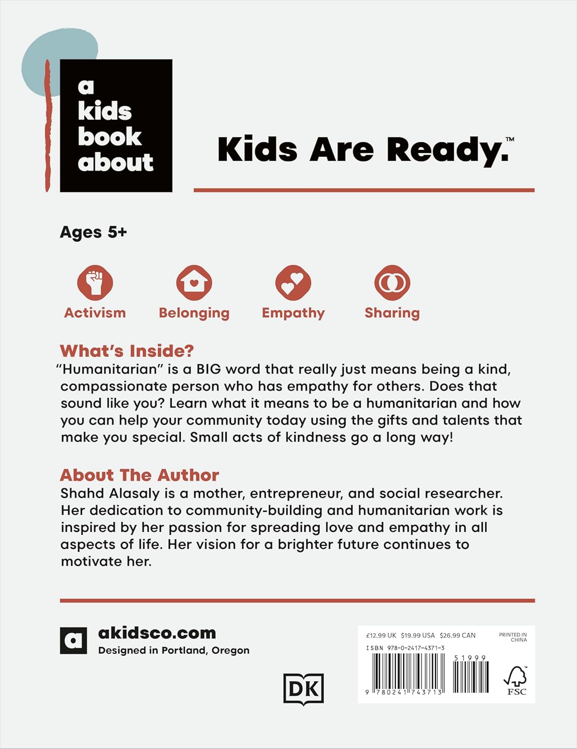 This is a kids’ book about humanitarianism. “Humanitarian” is a BIG word that really just means being a kind, compassionate person who has empathy for others. Does that sound like you? Great!