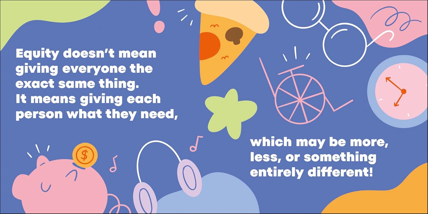 This book was made to introduce little ones aged 2-6 to the concept of equity, and how it can be exercised in their day-to-day lives. It teaches kids to think about justice and unfairness, and to move toward equity in everything they do.