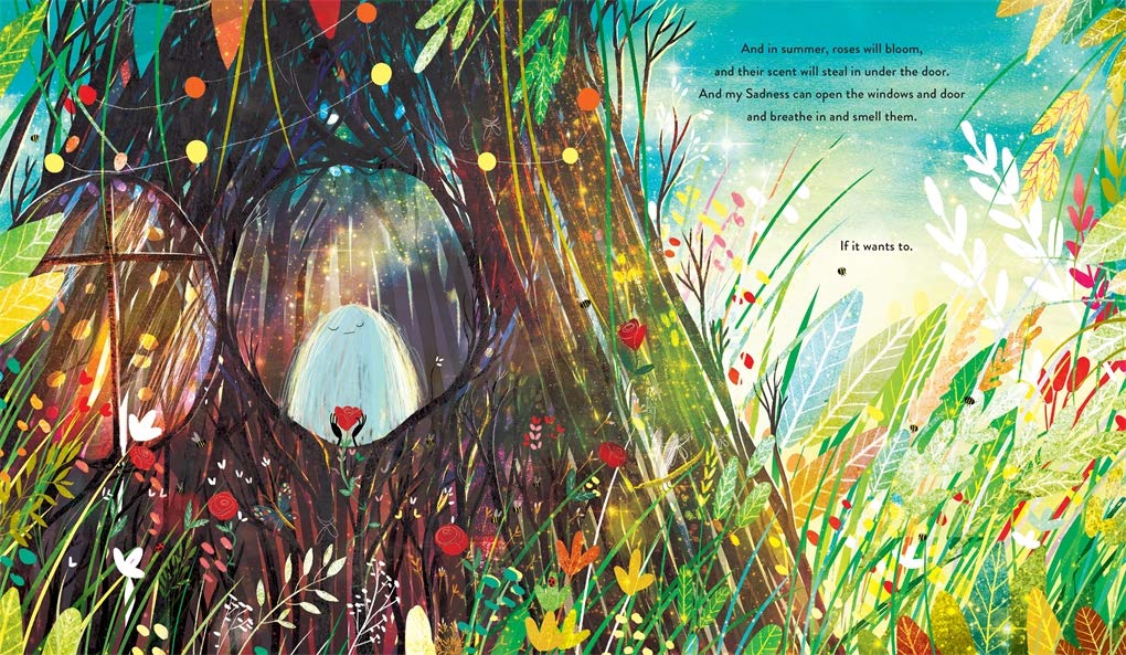A small boy creates a shelter for his sadness so that he can visit it whenever he needs to, and the two of them can cry, talk, or just sit. The boy knows that one day his sadness may come out of the shelter, and together they will look out at the world and see how beautiful it is.