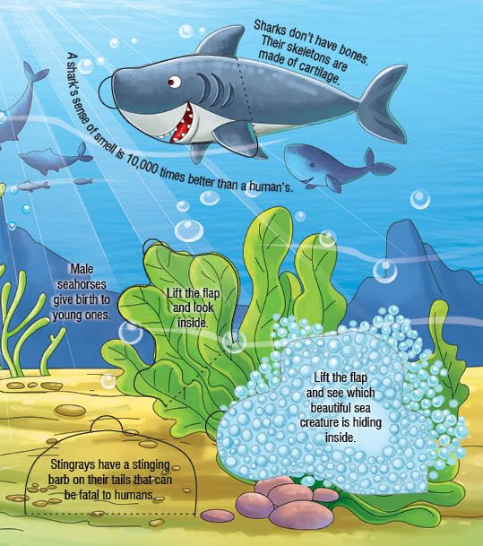 An educational discovery book with easy-to-lift flaps revealing exciting information about various topics, perfect for curious young learners.