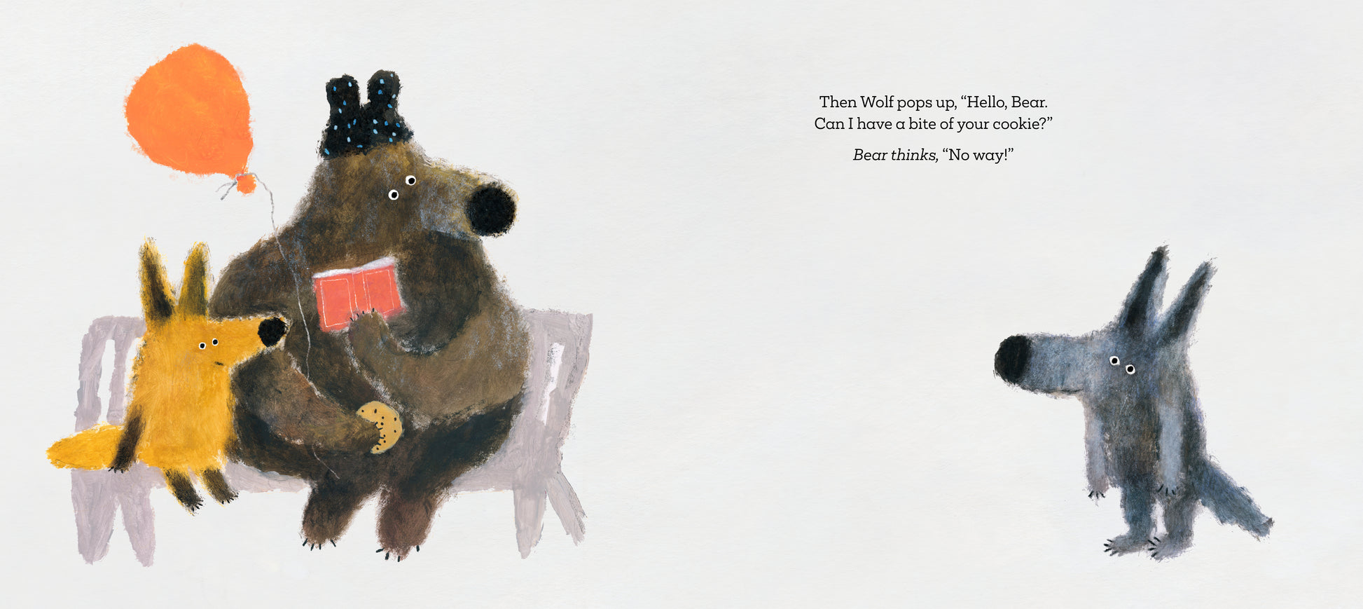 But no sooner has Bear made himself comfortable, than along comes Fox who wants to share the bench too. Bear agrees, begrudgingly. But no sooner has he overcome the idea of sharing his bench when Wolf pops up to ask for a bit of cookie . . . and then Rabbit jumps up to read his book . . . and then Elephant lumbers along to play with his balloon. And before Bear knows it, it's all become too much for him! AAAAAARGH! yells Bear.