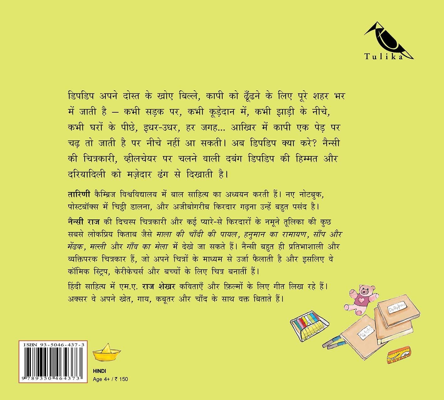 Dip Dip looks everywhere for her friend's lost cat. And when it finally climbs up a tree and can't come down, the only thing to do is...? Exuberant illustrations capture the spirited little girl for whom being on a wheelchair stops her from nothing!