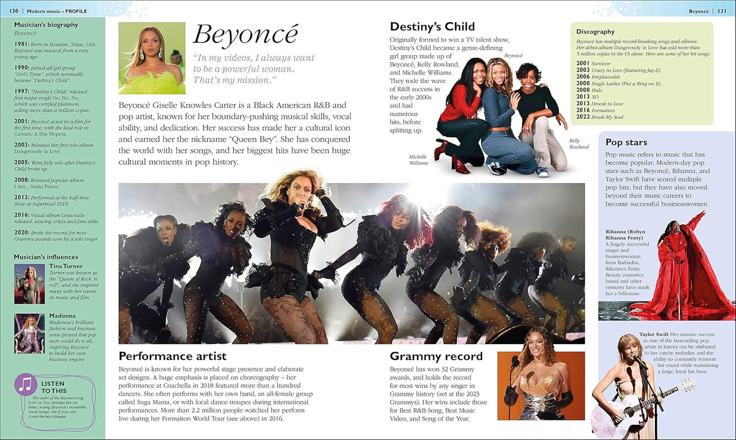 You'll find out how instruments are made and played, and learn about the fascinating lives and achievements of great composers and musicians, from Bach to Bowie, Bjork and Beyoncé.