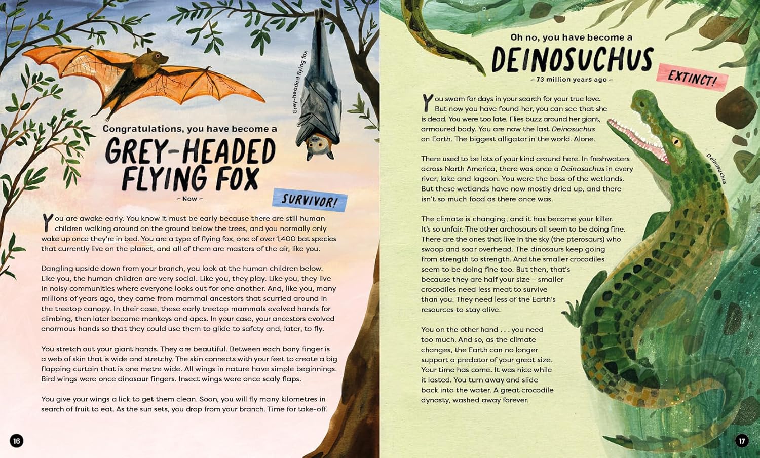 On every page, you will discover a new animal with its own exciting story to tell. It’s up to YOU to make the decisions that will lead to their next evolutionary step. Can you survive to the present-day or will you face extinction along the way? Will you grow a backbone, take to the skies, or dive deeper for your dinner? For the first time ever, the journey is in your hands . . .