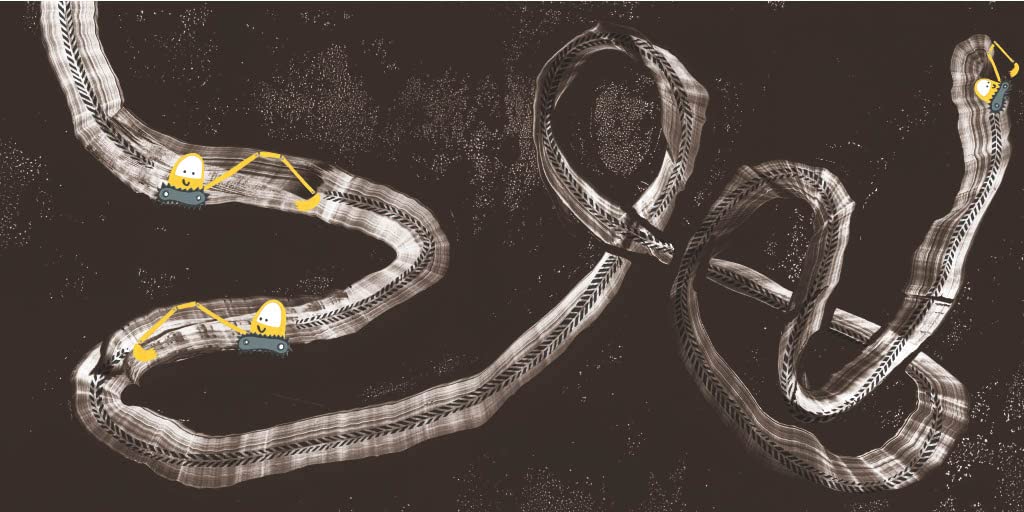 Join Digger at the roadworks where she decides she no longer likes digging down – she wants to dig UP!