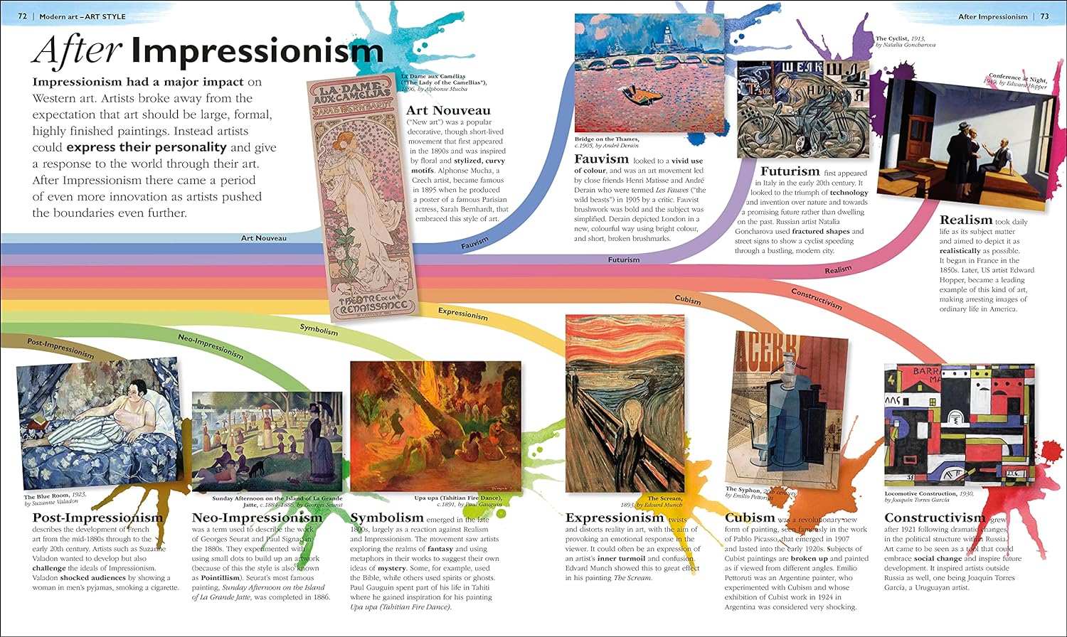 - Chapters which cover a huge range of artistic styles, from the very first cave paintings to contemporary art installations.