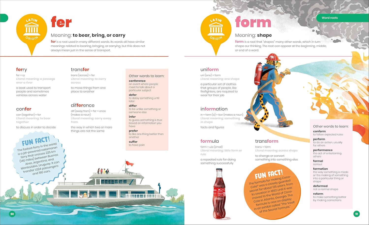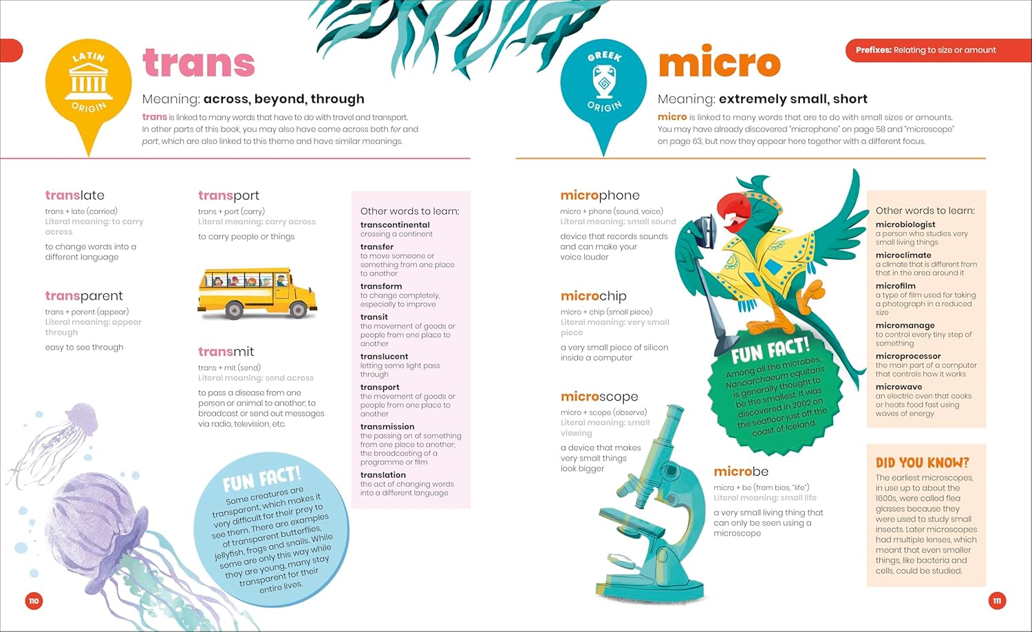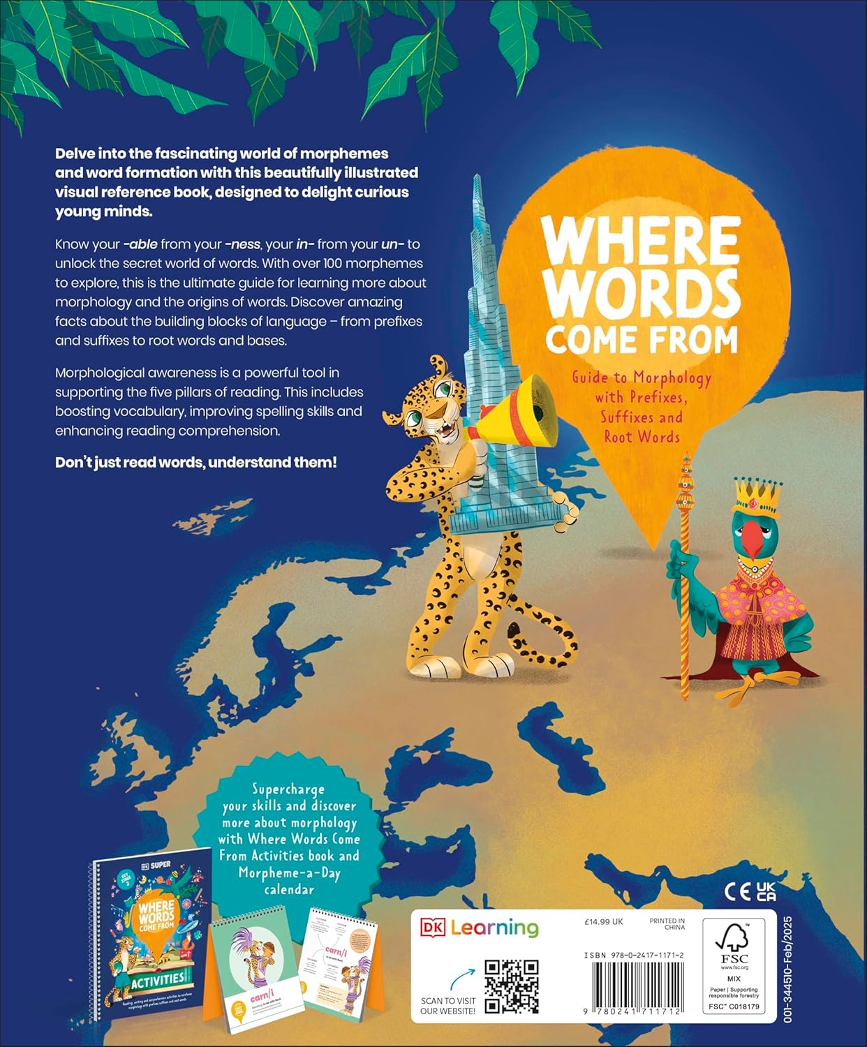 DK Super Where Words Come From is the ultimate guide for learning more about morphology and the origins of words. Discover amazing facts about the building blocks of language – from prefixes and suffixes to root words and bases.