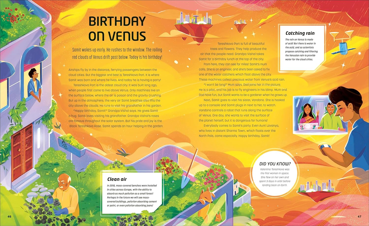 The Children’s Book of the Future provides a diverse and multicultural approach that will appeal to children of all backgrounds. The exploration of future technology and some of the diverse visions explored include a plane ride on one of Saturn's moons, a journey to a faraway star that is lightyears from Earth, life on a floating city, and living amongst robots. Inspire young changemakers with this book that sets out to reclaim the future for current and future generations of children.