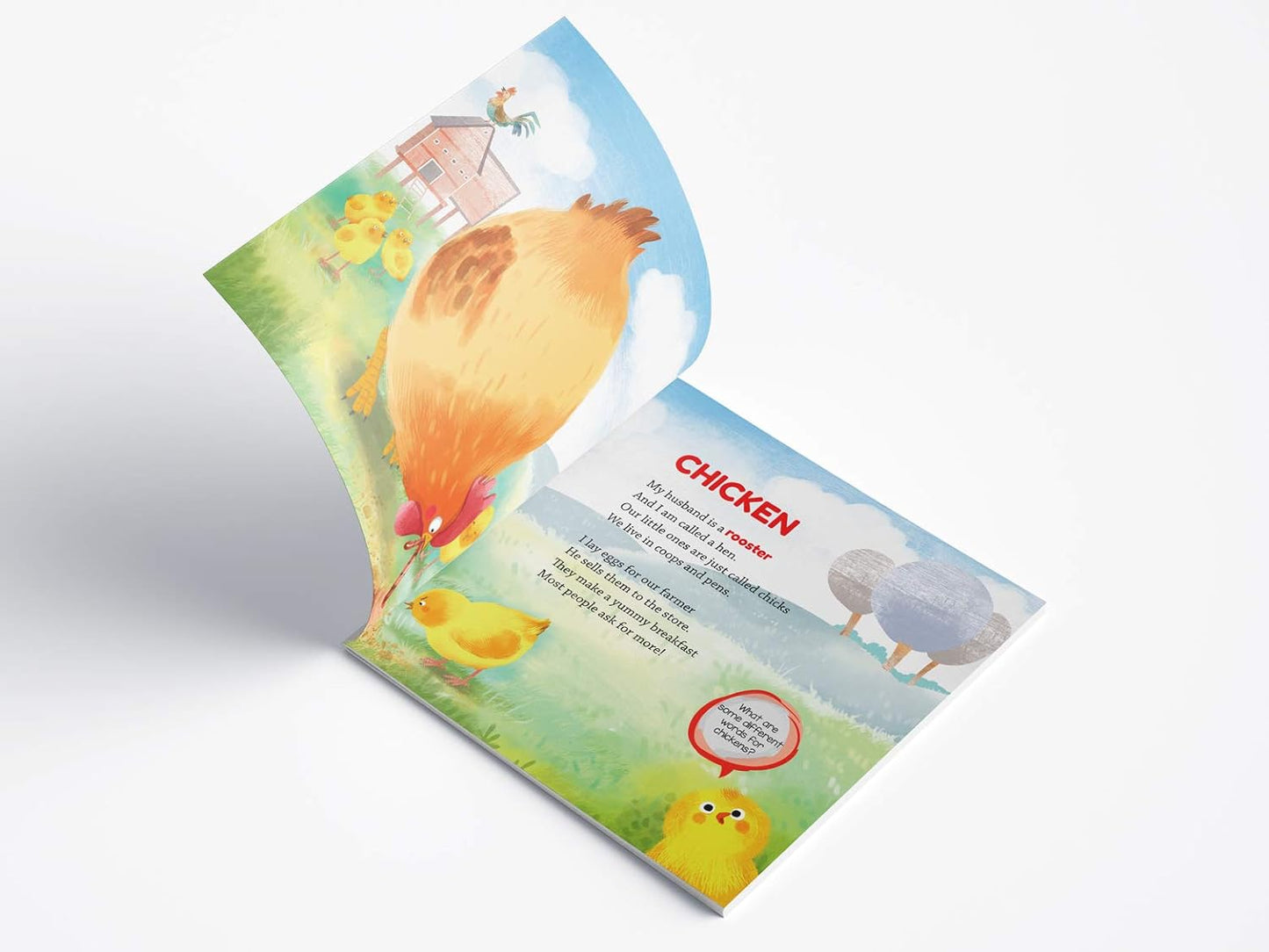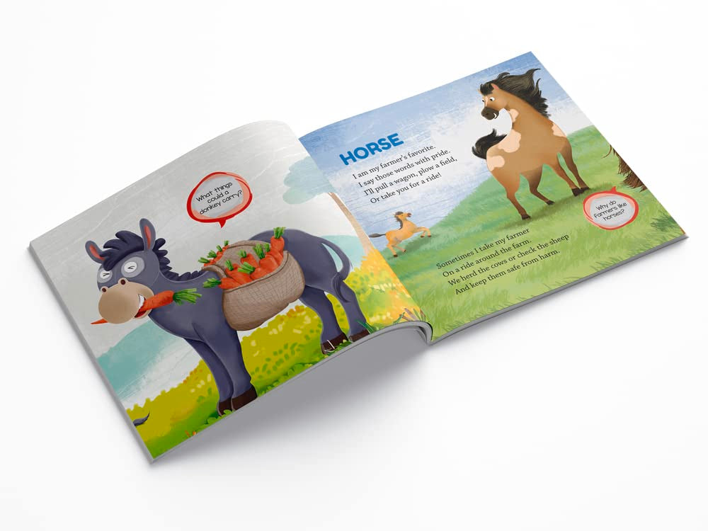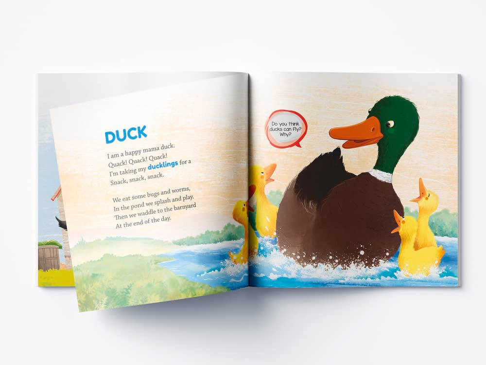 Take a trip to the farm and meet some of the animals who live there. Fun facts, clever rhymes, colorful illustrations, and "Let's Talk!" questions make learning about farm animals fun! A beautifully illustrated book to introduce early learners to Farm animals.