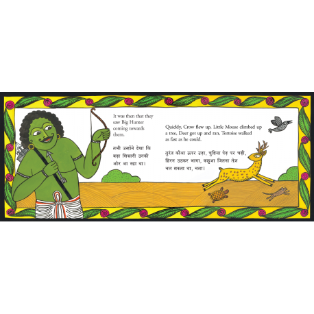 Big Hunter catches poor Deer in a net. Can Deer's friends help him escape? One of the more popular stories from the Panchatantra about friendship and resourcefulness, in a bilingual retelling. The illustrations have the strong lines and vivid colours of Bengal’s patachitra folk paintings used by storytellers as backdrops.
