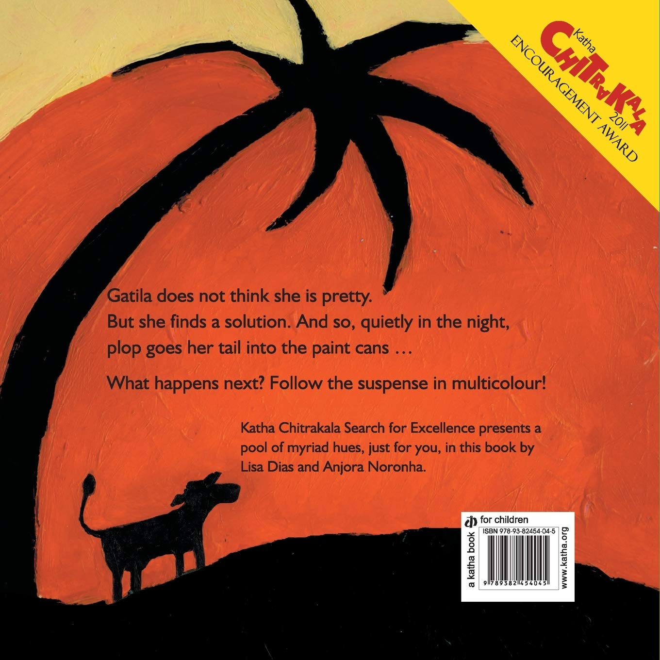 Gatila does not think she is a pretty cow, but she has a solution. And so, quietly in the night, plop goes her tail in the paint cans. What happens next? Find out in multicolor!