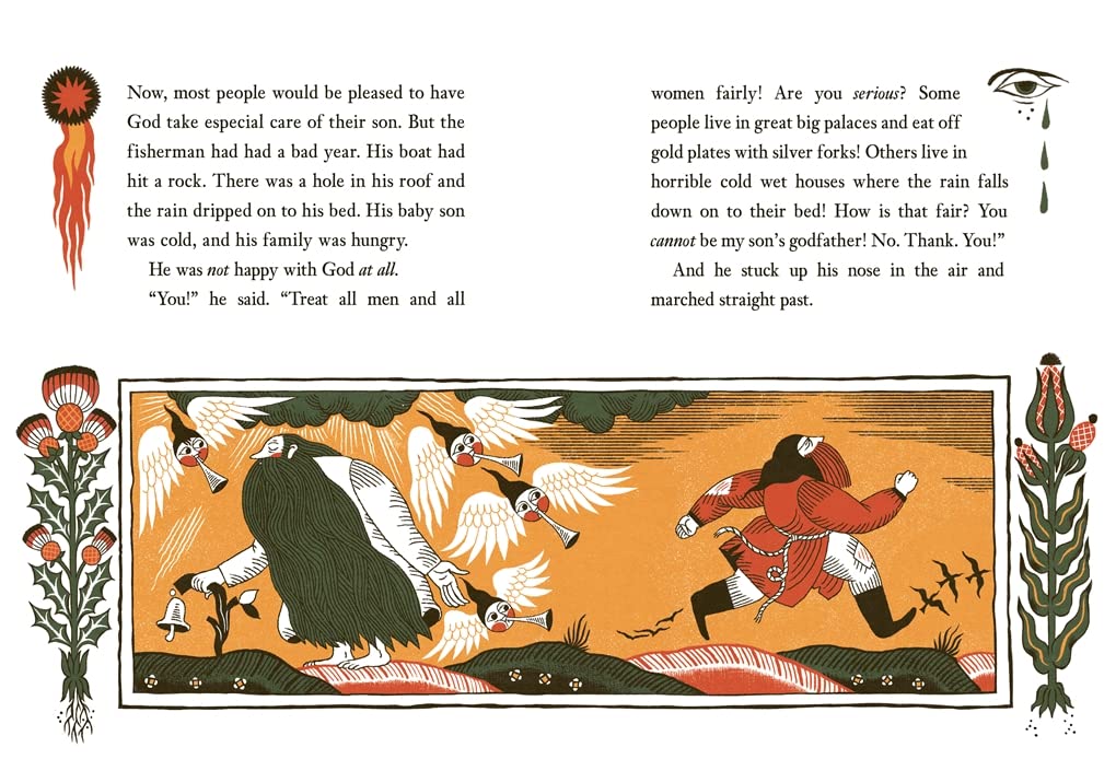 When a poor fisherman chooses Death to be godfather to his son, he’s sure he’s made a good choice – for surely there’s no man more honest than Death? At the christening, Death gives the fisherman a gift that seems at first to be the key to the family’s fortune, but when greed overcomes the fisherman, he learns that nobody can truly cheat Death . . .