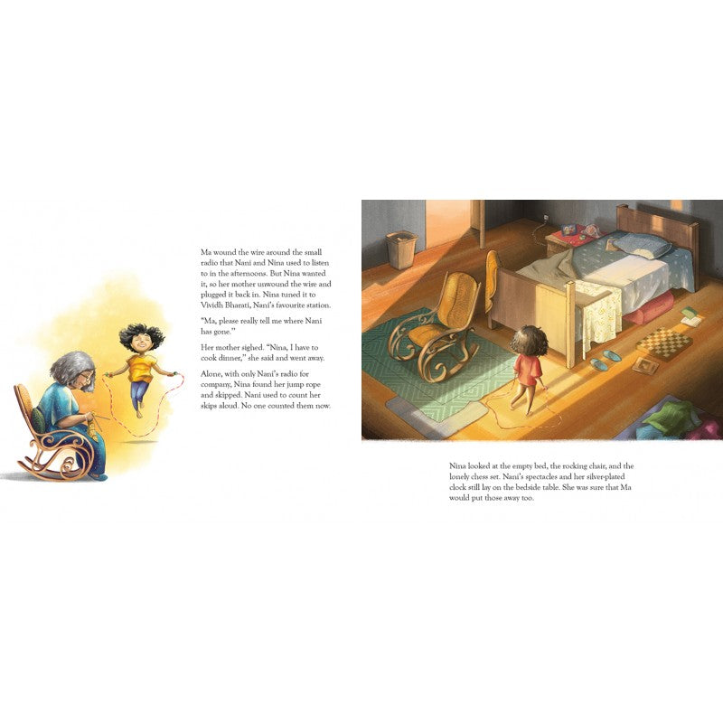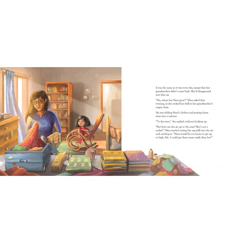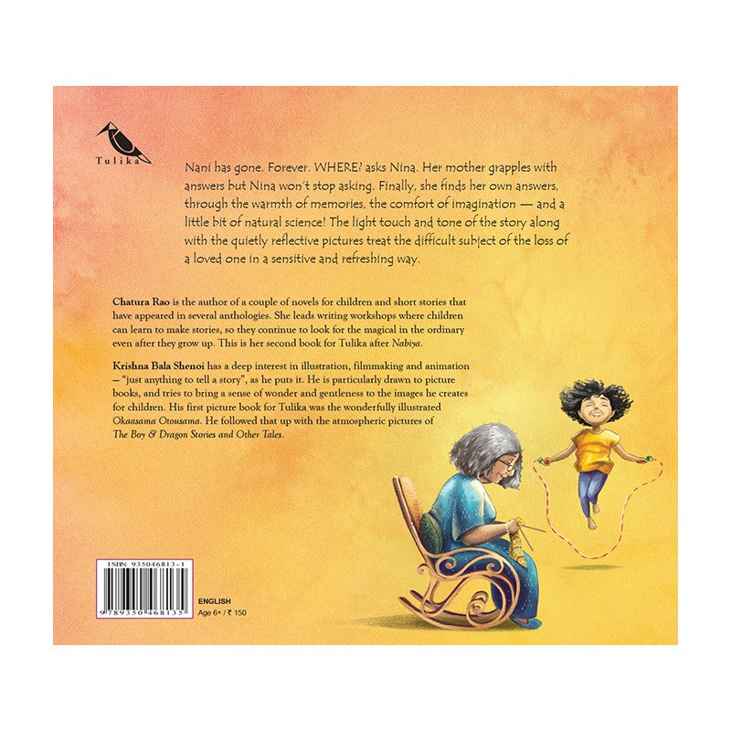 Nani has gone. Forever. WHERE? asks Nina. Her mother grapples with answers but Nina won’t stop asking. Finally, she finds her own answers, through the warmth of memories, the comfort of imagination – and a little bit of natural science! The light touch and tone of the story along with the quietly reflective pictures treat the difficult subject of the loss of a loved one in a sensitive and refreshing way.