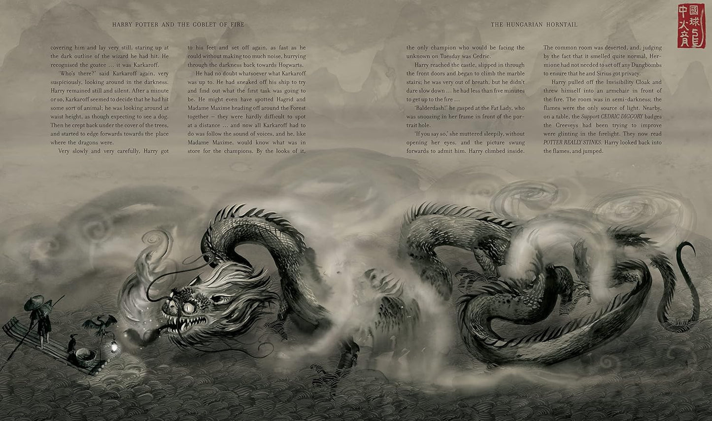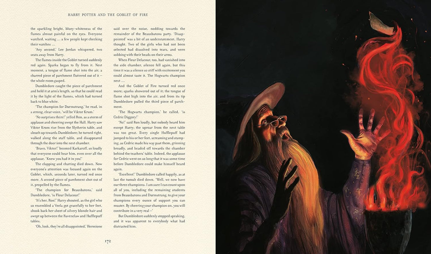 Dragons! Daring! Danger! The first fully illustrated edition of Harry Potter and the Goblet of Fire is an extraordinary creative achievement by two extraordinary talents. Jim Kay's inspired reimagining of J.K. Rowling's classic series has captured a devoted following worldwide, and the drama just gets bigger as the series progresses. With over 150 illustrations, Jim Kay's unique vision delivers breathtaking scenes and unforgettable characters – including fan favorites Cedric Diggory, Fleur Delacour and Viktor Krum illustrated by Jim Kay for the first time.