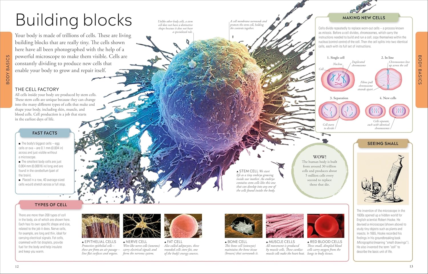 An international best-seller since 2012, Human Body: A Children's Encyclopedia has now been fully updated in line with the latest research. Combining clear descriptions of human biology with awesome photographs, graphics, and CGI artworks, make your way from the skin, muscles, organs, bones, right down to your cells and DNA.