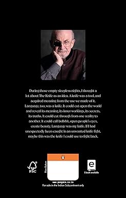 Knife is Rushdie at the peak of his powers, writing with urgency, with gravity, with unflinching honesty. It is also a deeply moving reminder of literature’s capacity to make sense of the unthinkable, an intimate and life-affirming meditation on life, loss, love, art—and finding the strength to stand up again.