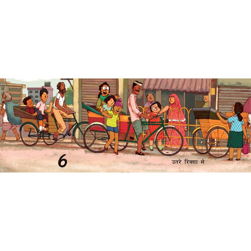 10, 9, 8, 7 – count the children as they come leaping, riding, zooming in on cycles, scooters, rickshas… A racy counting book with a different mode of transport on every spread! Children with completely different personalities brighten up the streets. NCERT recommended