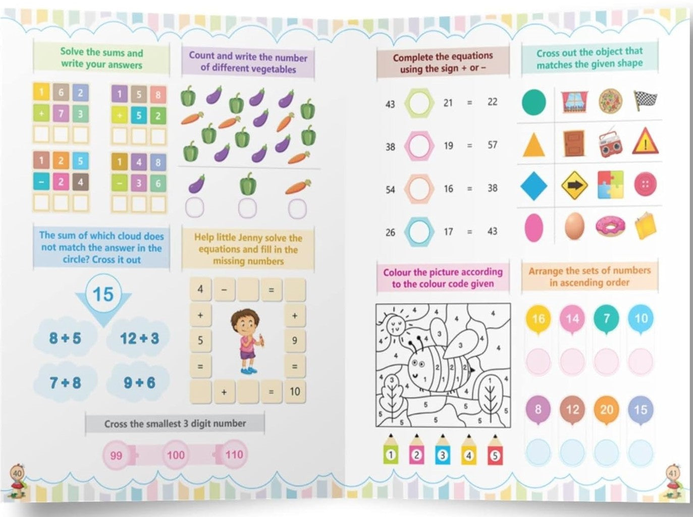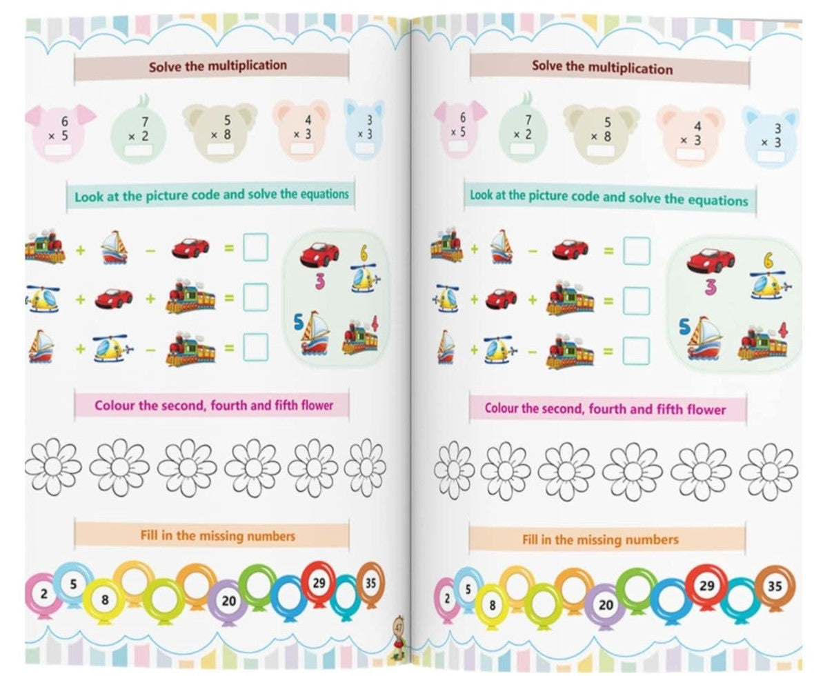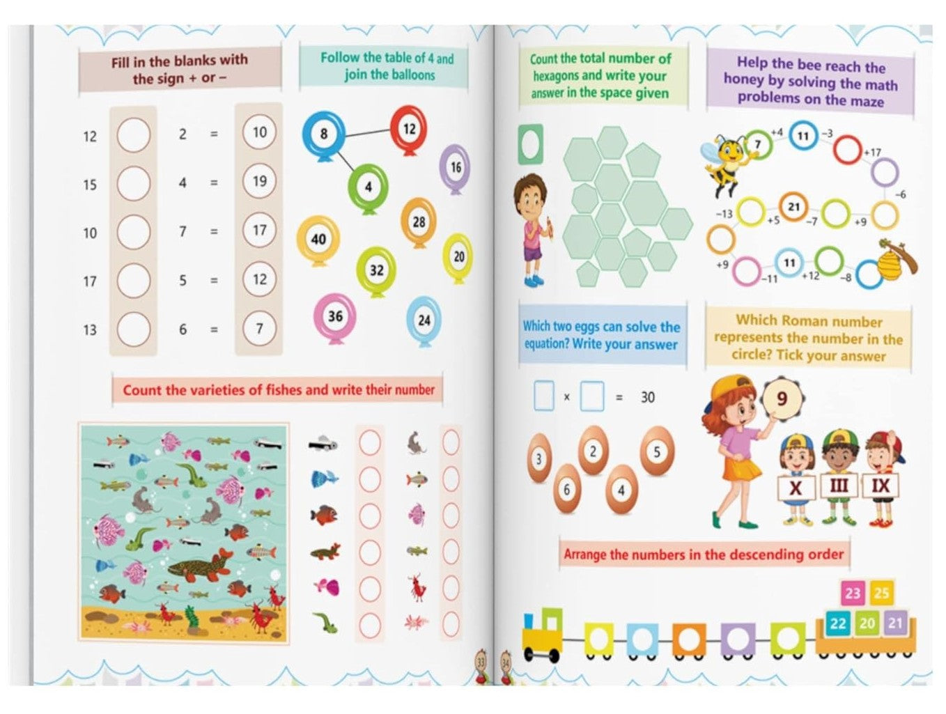 Math is a part of everyday life, and there is no better time to begin developing the skill than when kids are getting ready for school. 200+ Math Activities for Kids is a mixed bag of fun and exciting exercises to introduce the fundamentals of math to early learners. From counting and coloring to solving equations, from matching numbers and shapes to finding paths through mazes, this book has a variety of activities to engage kids in creative learning and help them discover the magic of numbers.