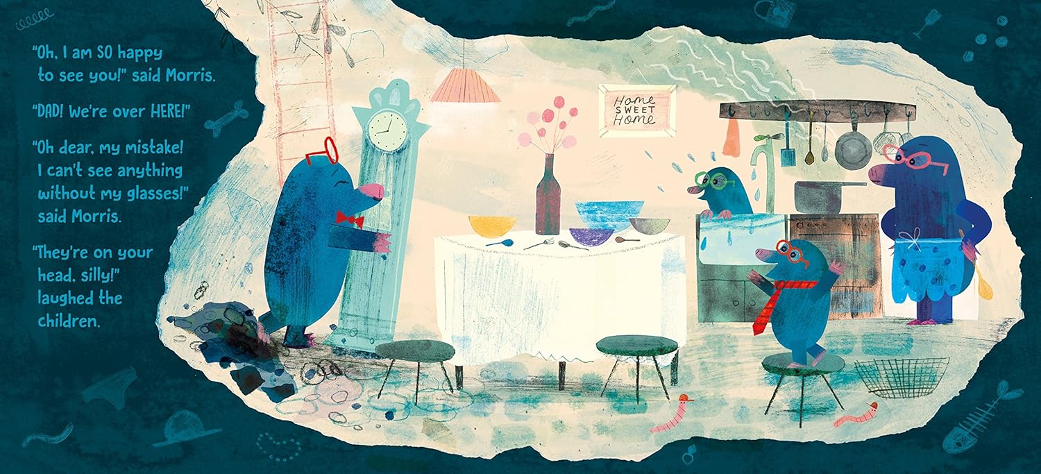 From Jarvis, the creator of Alan’s Big, Scary Teeth, comes another truly unmissable, hilarious adventure about a daddy mole who has mislaid his spectacles. Morris can’t find them anywhere. So, he decides to go on without them, trusting his instincts to lead him the right way home to his waiting family and delicious dinner of worm noodles. “Mrs Mole, I’m homeeee!” he sings … as he burrows right into some poor unsuspecting rabbit family’s hole. Oh dear. Without his spectacles, Morris really can’t see a single thing – how will he ever get home? With perfect comic timing and a whole lot of heart, Jarvis will have all readers rooting for Morris to find his family, and rejoicing in the idea that – glasses or no glasses – you can always make your way back to home sweet home.