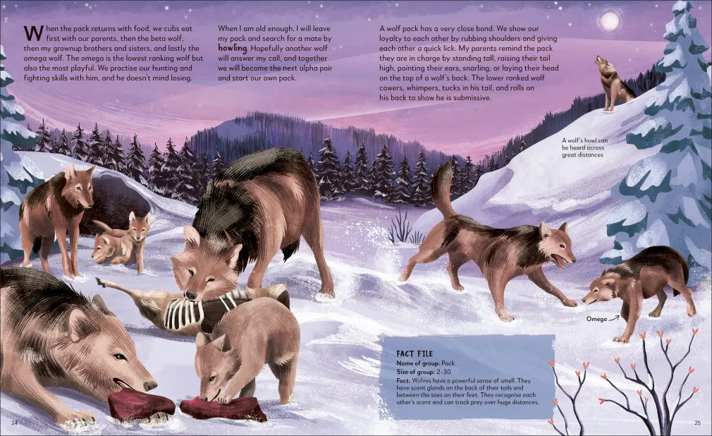 - Pages are written from the perspective of a different animal species within each group, allowing children to dive deeper into this subject.