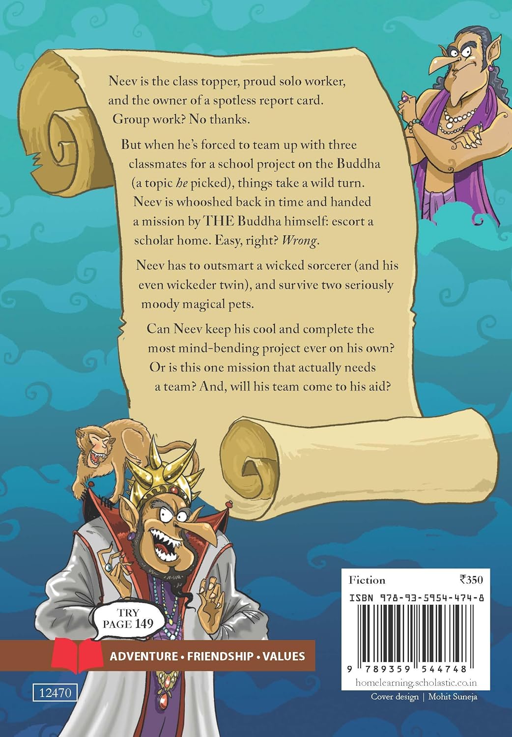 But when he’s forced to team up with three classmates for a school project on the Buddha (a topic he picked), things take a wild turn. Neev is whooshed back in time and handed a mission by THE Buddha himself: escort a scholar home. Easy, right? Wrong.