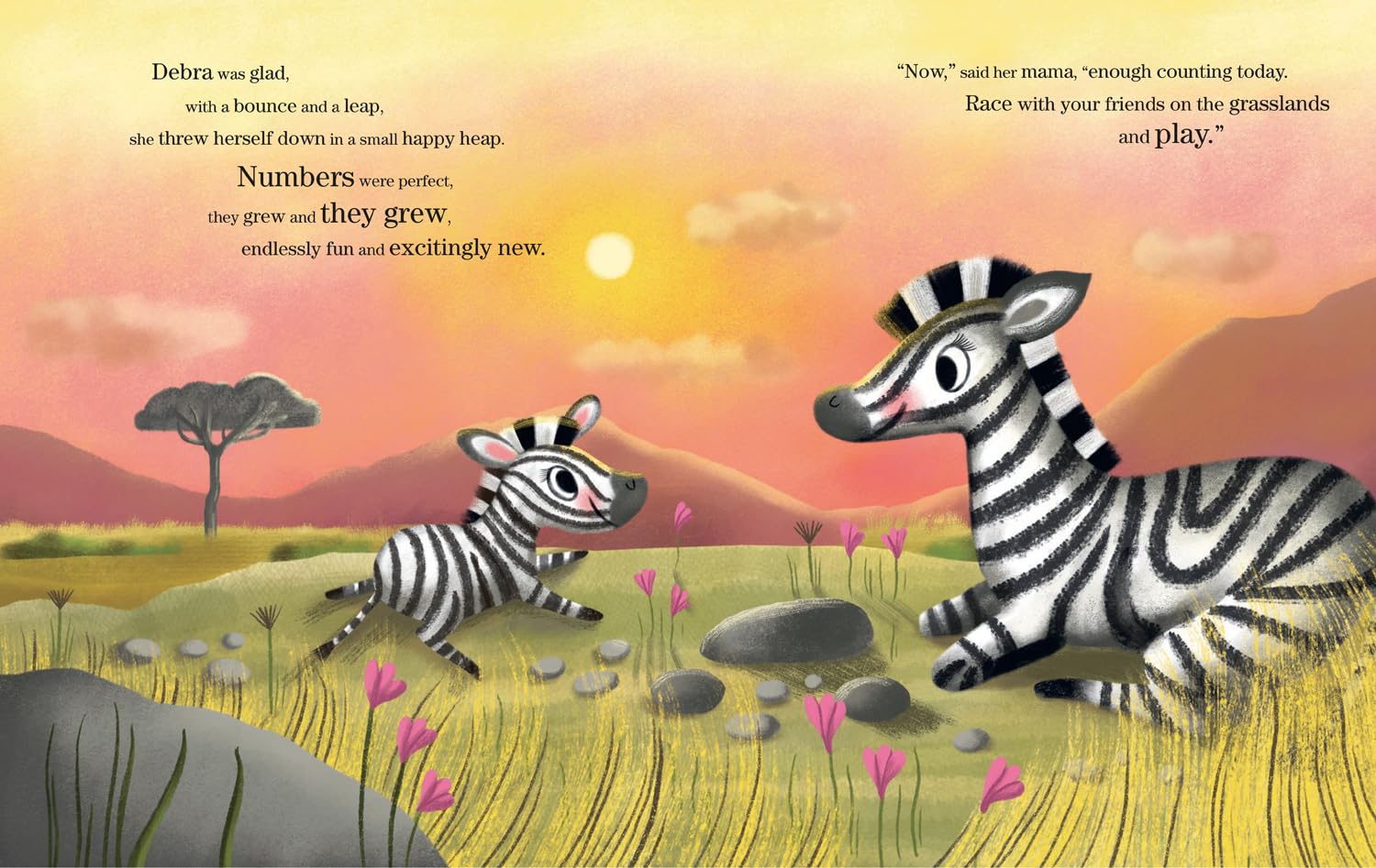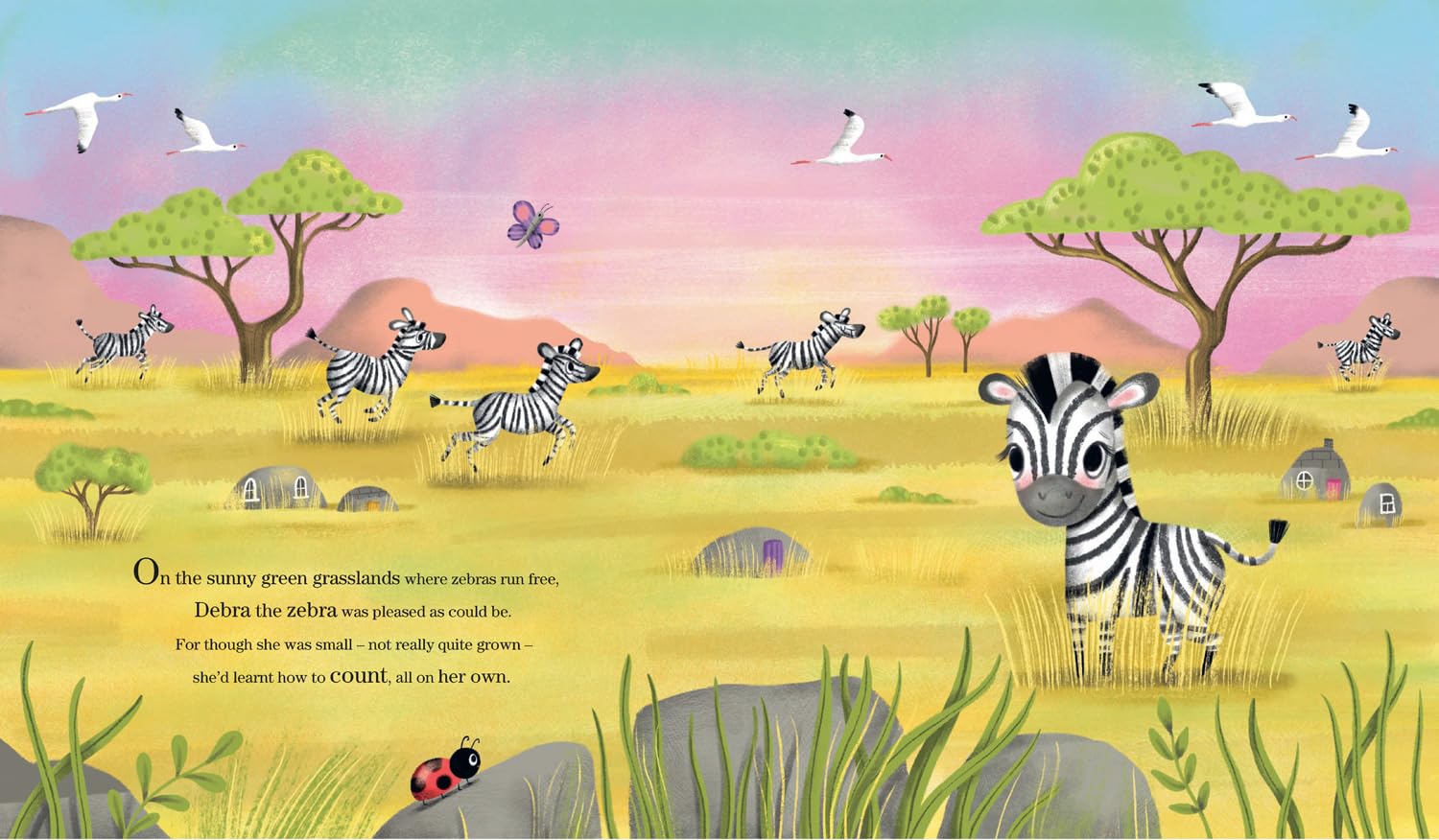 It tells the story of Debra the zebra who is delighted to find she can count anything and everything… but disaster strikes when Debra realises how big the world is – and just how small she is in it. Luckily, her wise Mama is there to remind Debra that in a world of hundreds, thousands – even millions – sometimes it’s just ONE little zebra, that counts most of all.