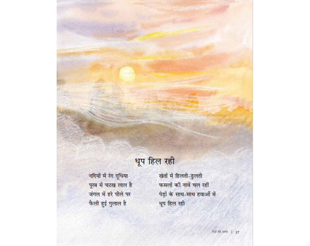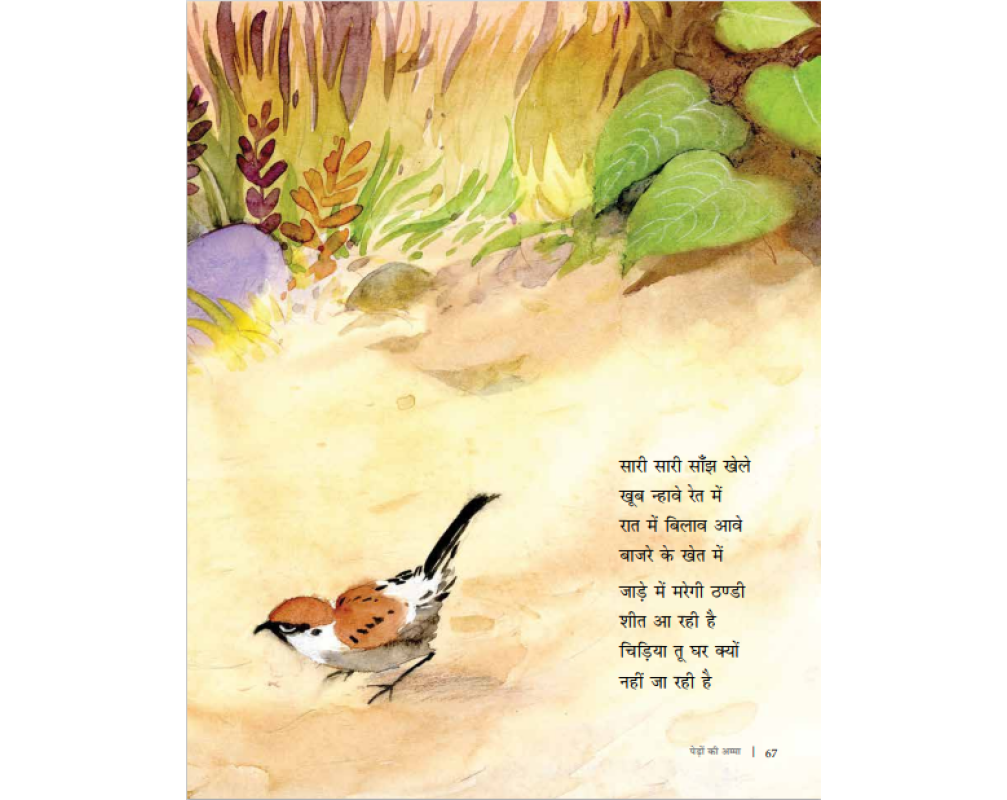 Poet Prabhat's this collection has long poems. Children who have learnt to read can enjoy these poems. These poems have a fresh language, lively expression, refreshing scenes, and the newness of perspective and content. A titehari is talking opening doors for the morning. A talking titehari is often seen but the phrase in the poem enriched it with so many possibilities.
