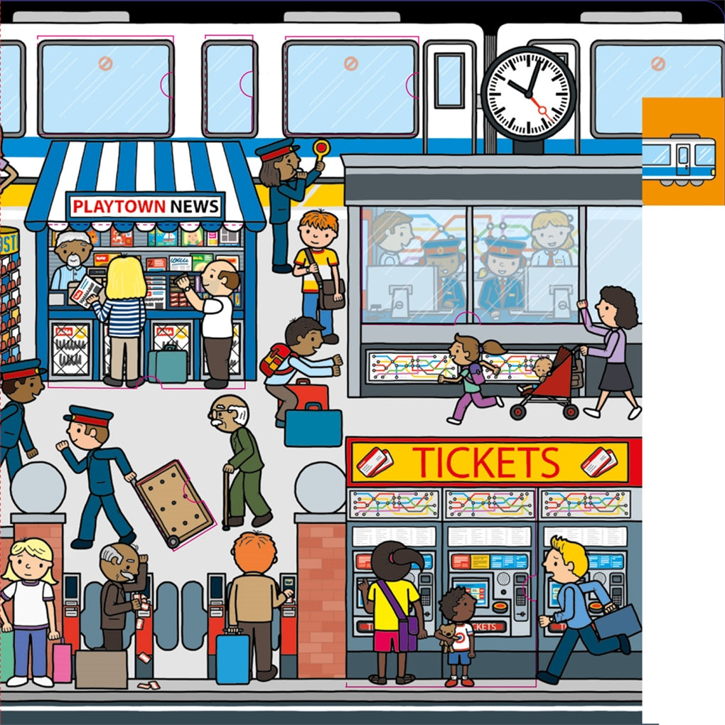 The illustrated interiors are packed with detail, showing busy scenes and cross-sections from around the town, including the airport, the hospital and the shops. There are lots of things to look for and find on every page, and over 35 flaps to find throughout the book which reveal fun scenes.