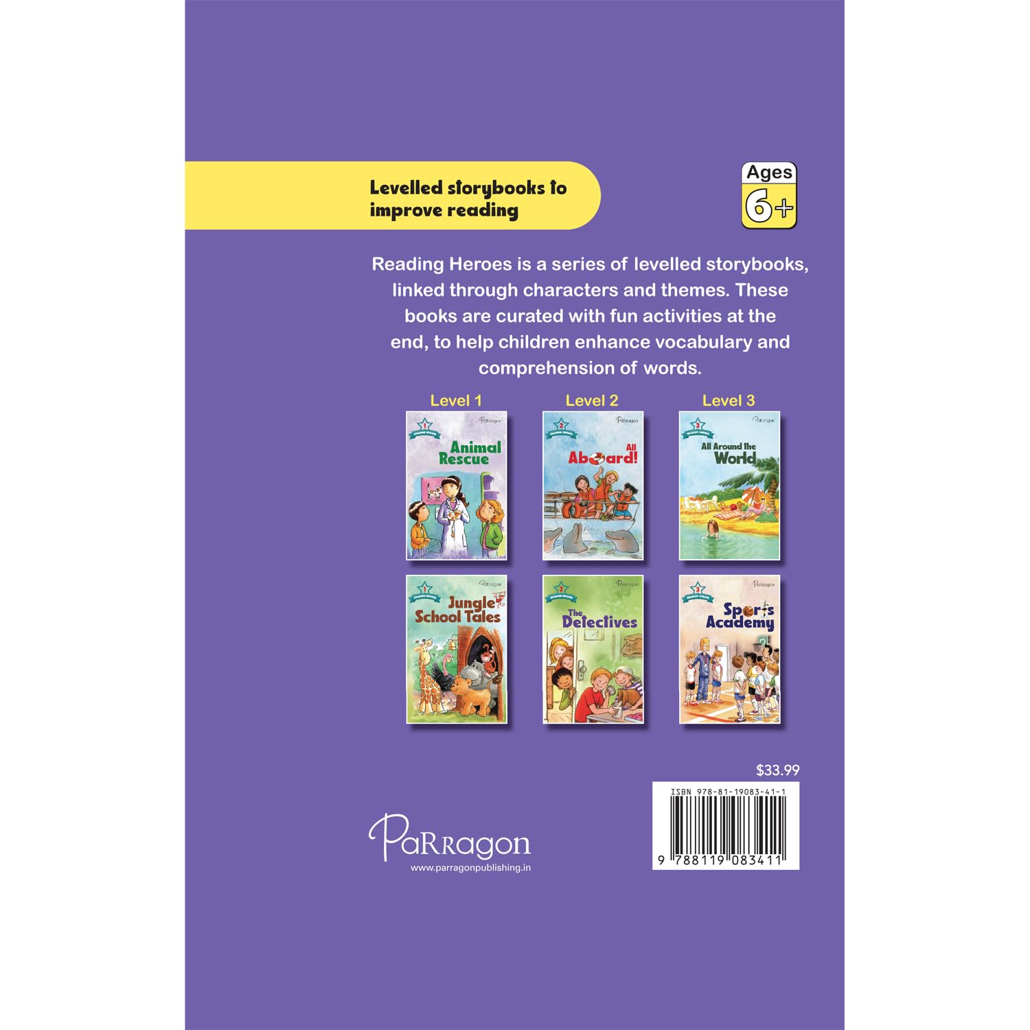 Reading Heroes is a series of levelled storybooks linked through characters and themes. These books are curated with fun activities at the end, to help children enhance vocabulary and comprehension of words.