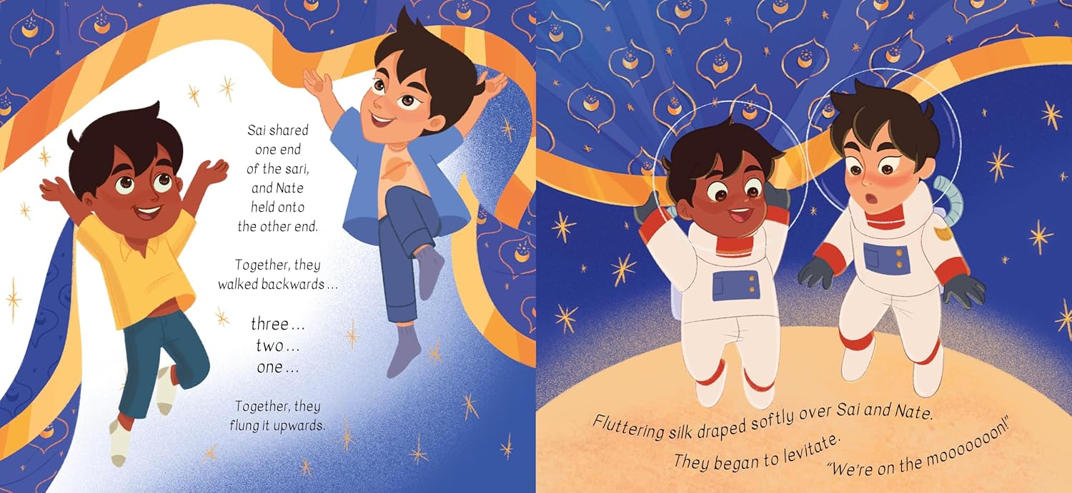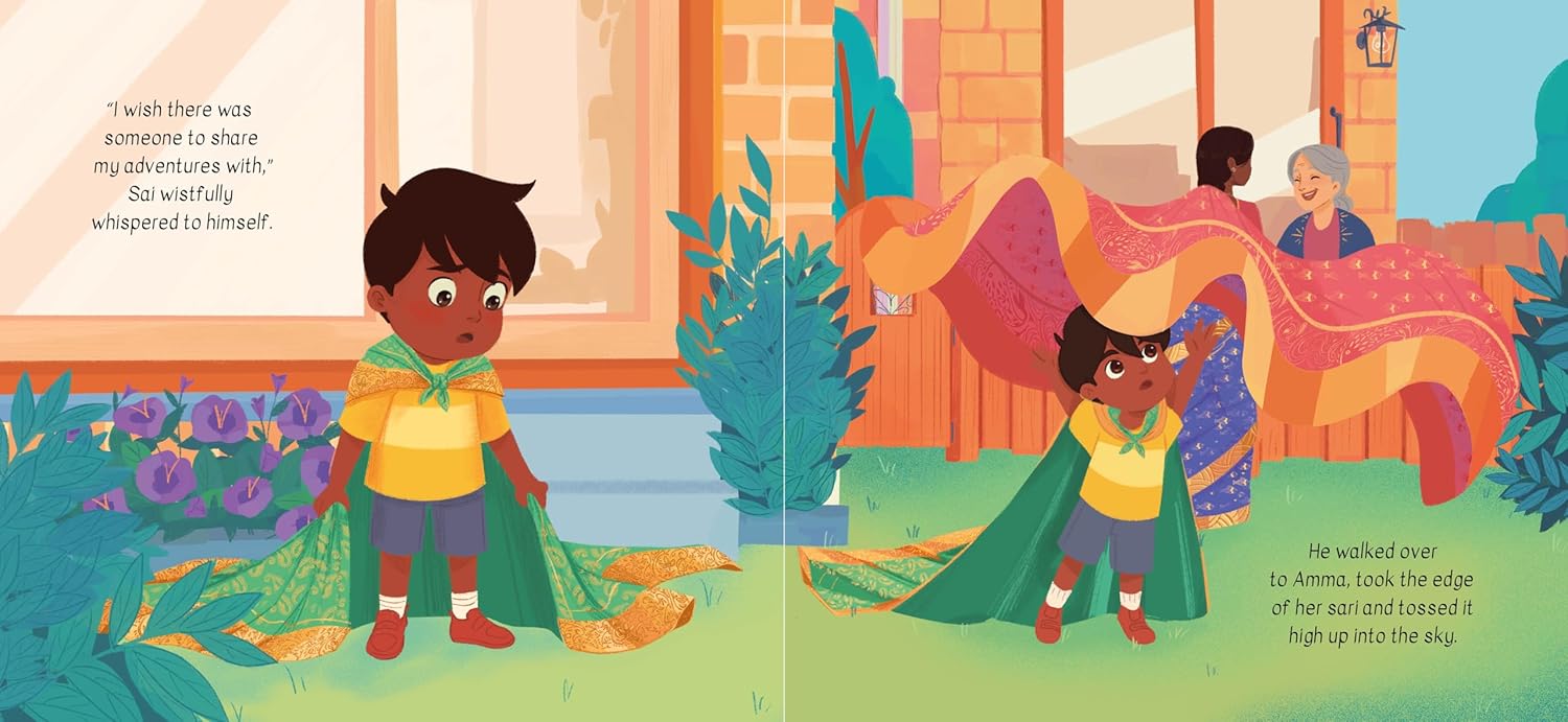 Sai loves to play with his amma’s saris. Under each six yards of magic silk, he is transported to a new world. He’s traveled from the depths of the ocean to the forests of Sinharaja—even to the moon and back! But can he find someone to share his adventures with?