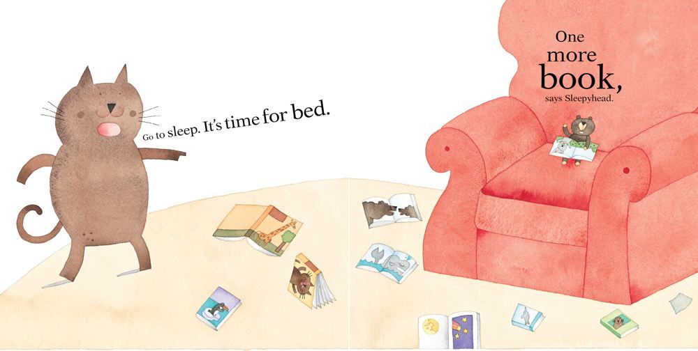 A kitten toddler is putting her favorite teddy bear to bed, just as her mother always puts her to bed. But it's really not bedtime until one more hug, one more kiss, one more snuggle, and one more story have been shared. And then, finally, it is time for sleepyheads everywhere to fall asleep.