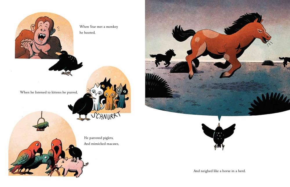 A long time ago in Vienna, Austria, a starling was for sale in a shop. Star wasn’t fancy or flashy, but he had a marvelous voice and could mimic intricate songs. When a passerby recognized his own musical composition being chirped, Star found a new friend in Mozart. Mozart purchased Star and took him home to his Vienna apartments, where Star and his maestro continued to compose and make music that echoed around the world and is still played and performed today.