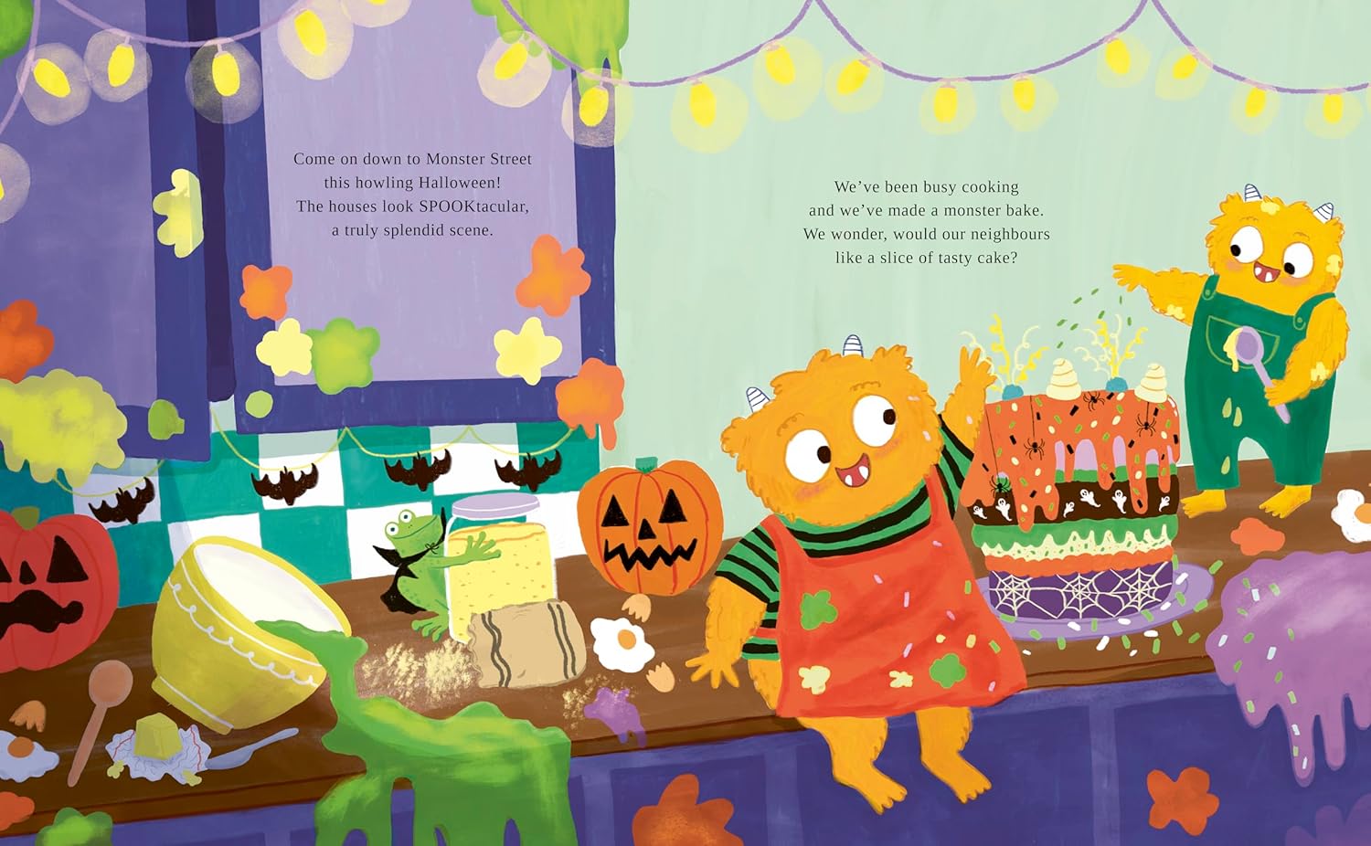 The Big Monster Bake is a picture book with a sweet and inclusive approach to Halloween. It stars a pair of little monsters hoping to share a homemade cake with their neighbours on Monster Street.