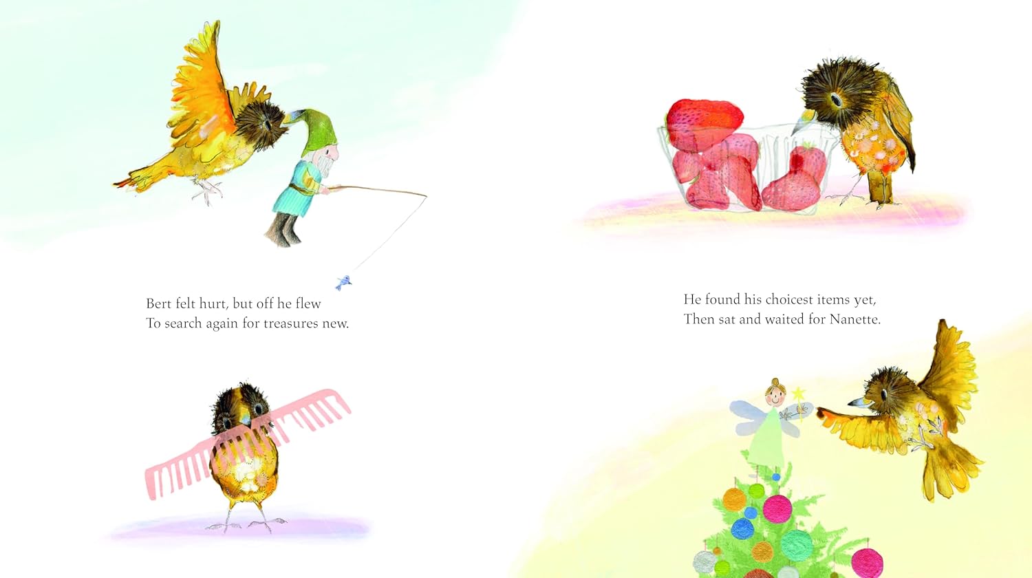 Bert the bowerbird has made the most perfect bower nest, complete with a pretty purple flower, and is hoping it will help him to meet the bird of his dreams. But will all his efforts to create a beautiful display be enough to win over Nanette?