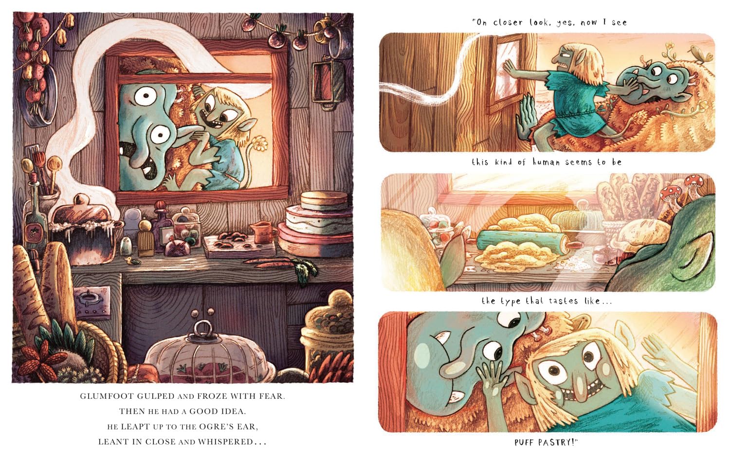 Every night, Glumfoot dreams of delicious meals and every night he is served the same thing: his dad’s bogey broth. He is overjoyed one day to discover the new café at the edge of the woods – but when one very hungry ogre decides he’ll eat the owner, it’s down to Glumfoot to save the chef, and with it, his dreams of ever having a good meal.