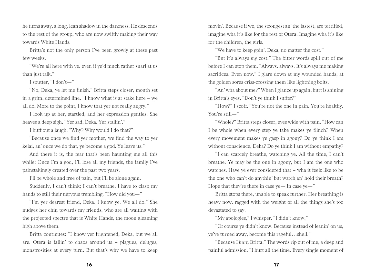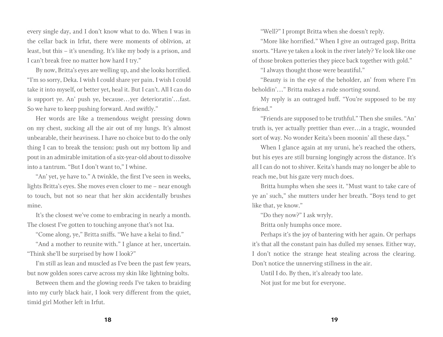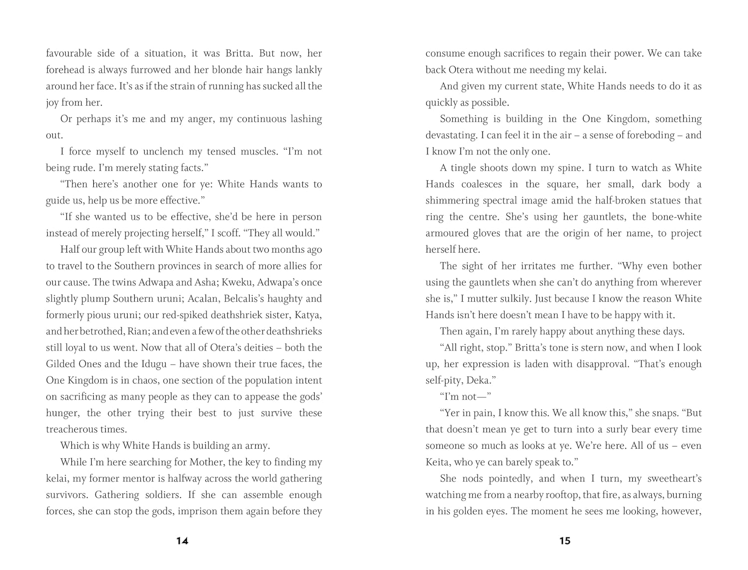 Mere weeks after confronting the Gilded Ones—the false beings she once believed to be her family—Deka is on the hunt. In order to kill the gods, whose ravenous competition for power is bleeding Otera dry, she must uncover the source of her divinity. But with her mortal body on the verge of ruin, Deka is running out of time—to save herself and an empire that’s tearing itself apart at its seams.