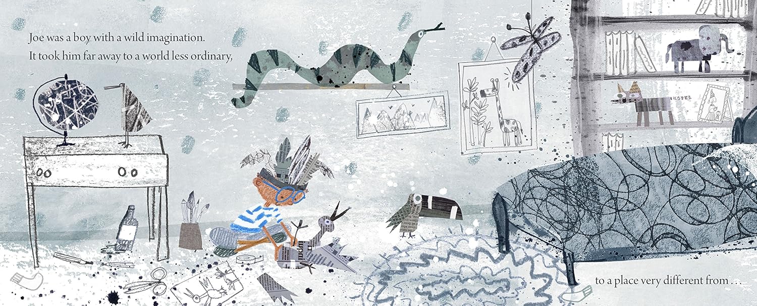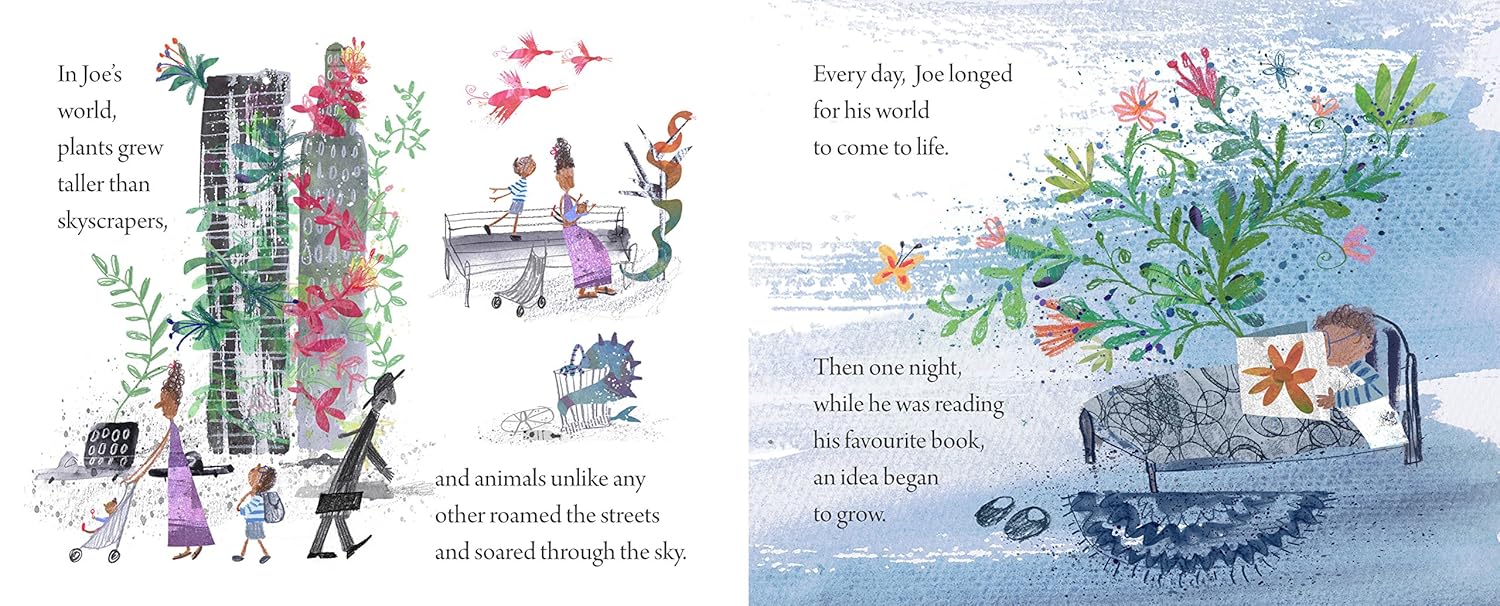 Joe is a boy just like any other, but Joe loves to imagine. Joe lives in a pretty ordinary tower block, in a rather ordinary city. His world is rather grey. However, he spends his time imagining a wonderful world filled with exotic plants and unusual animals.