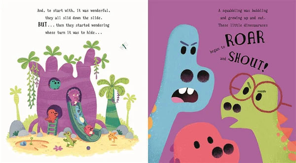 One sunny morning, a happy little Hugasaurus waves goodbye to her Pappysaur and sets off into the world on her own for the very first time. When she finds a playground, some new friends welcome her to their games. But it isn't long before the other little dinosaurs start to squabble.