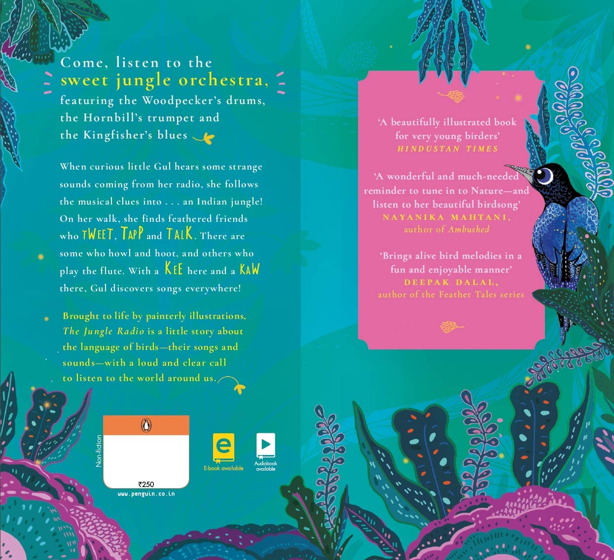 When curious little Gul hears some strange sounds coming from her radio, she follows the musical clues into . . . an Indian jungle! On her walk, she finds feathered friends who TWEET, TAPP and TALK. There are some who howl and hoot, and others who play the flute. With a KEE here and a KAW there, Gul discovers songs everywhere!