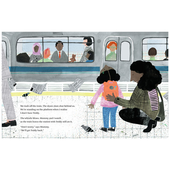 A little girl and her mummy are visiting Grandpa on the train. It’s very busy. When they arrive at their destination something is wrong. Teddy has gone missing!