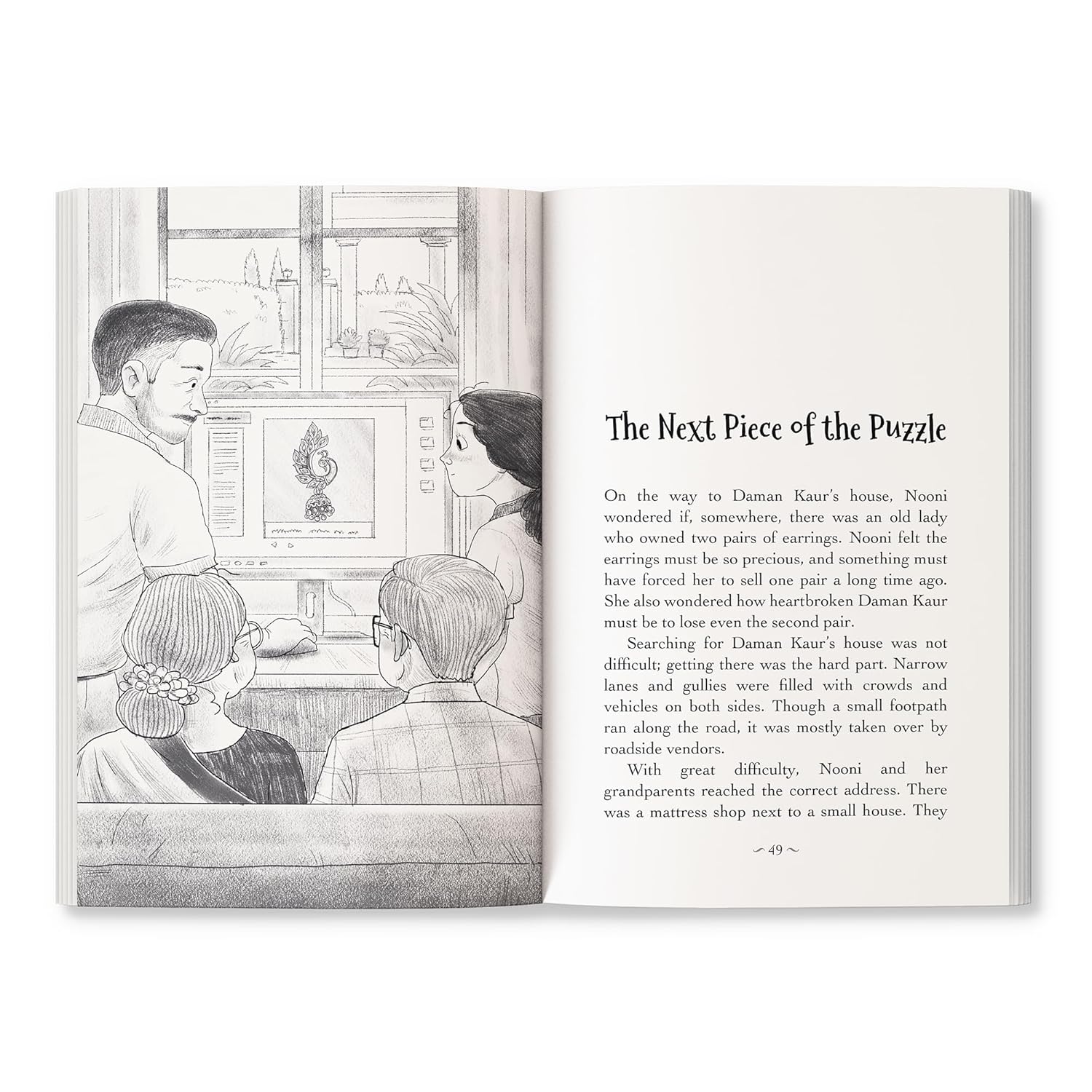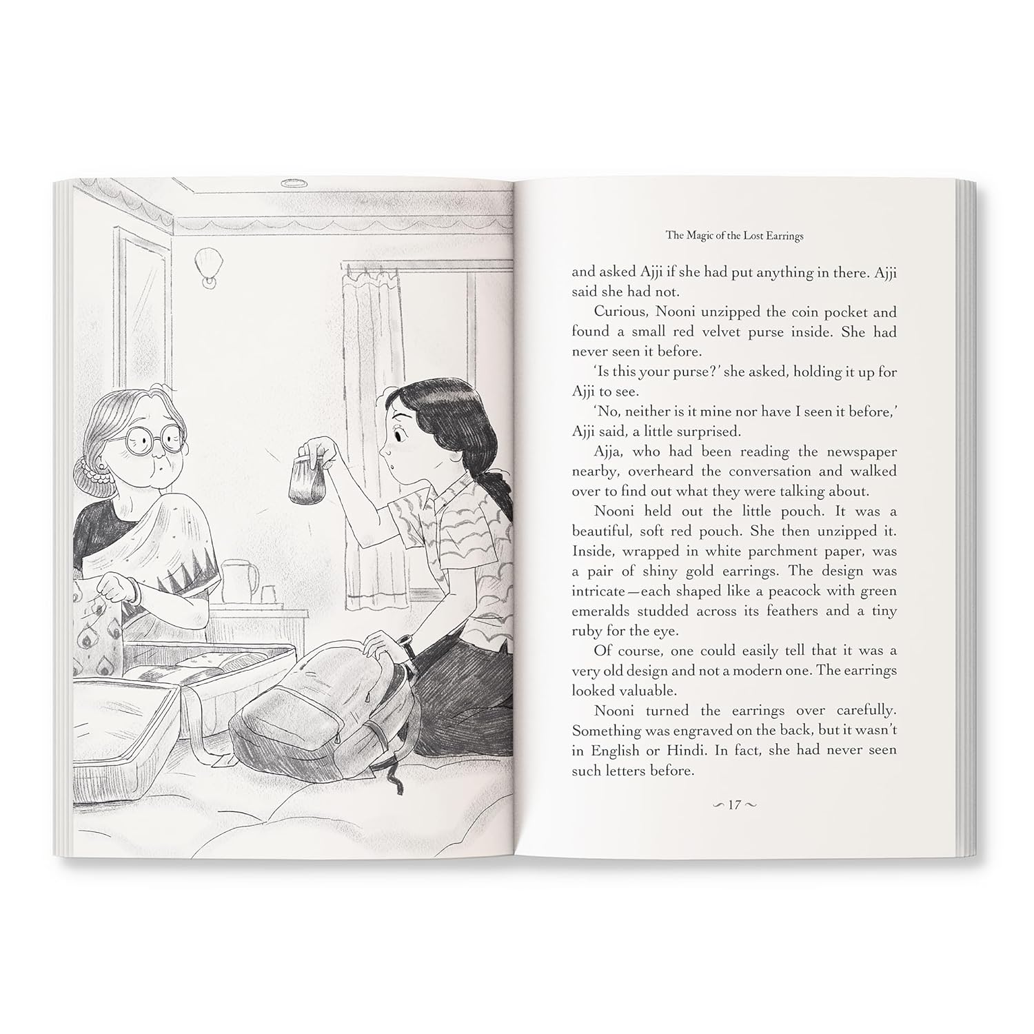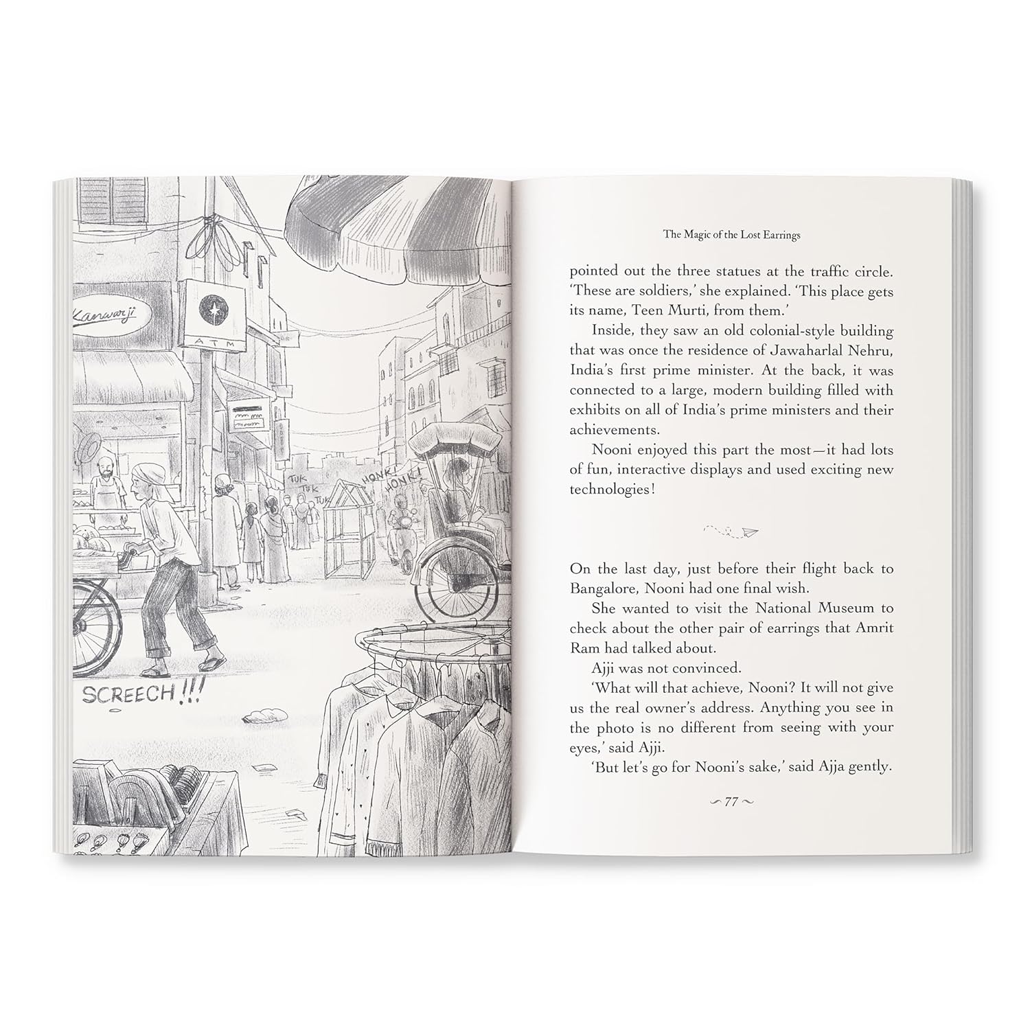 When a pair of antique earrings lands in Nooni’s hands, her quiet holiday with Ajja and Ajji turns into the adventure of a lifetime. From the sacred ghats of Ujjain to the buzzing streets of Amritsar, the storied lanes of Delhi and all the way to London, Nooni follows a trail shimmering with mystery and history.