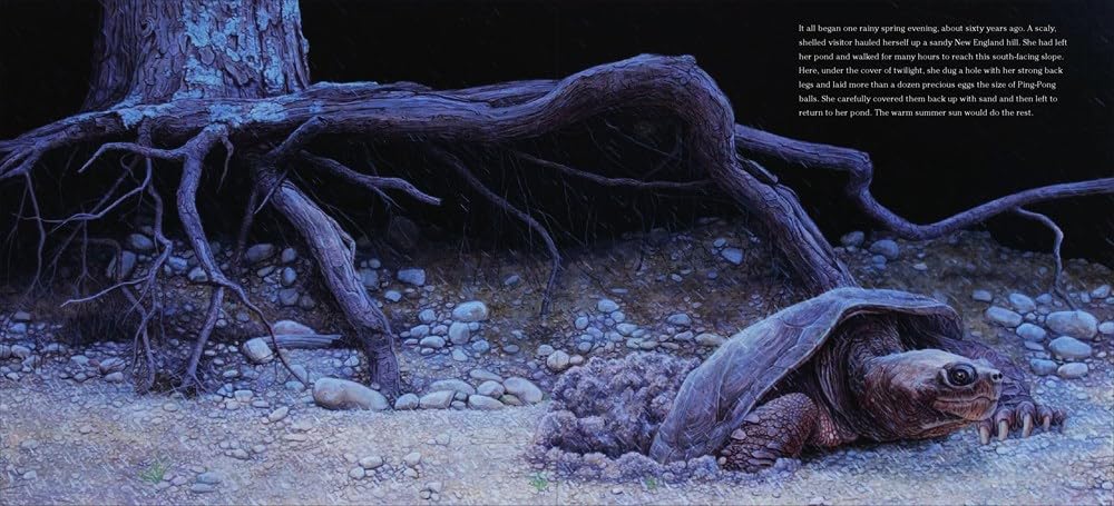 Here is the true story of a very lucky turtle. His story began long ago when he was hatched from a very small egg on an autumn day. After decades of traveling between his summer pond behind the firehouse and his winter pond across the street, he never could have guessed that on one October day he would become unlucky . . .