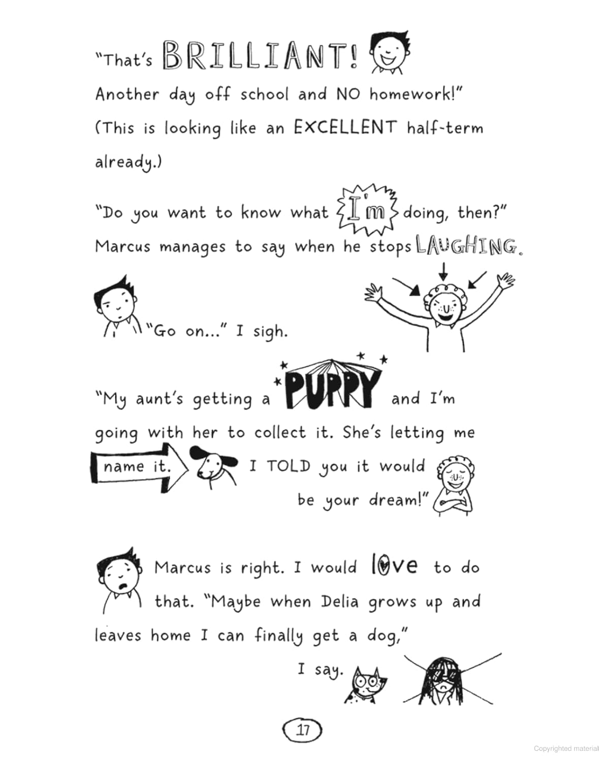 All his friends are away or busy and he doesn’t want Delia left in charge! So he’s finding lots of EXCELLENT things to do… It’s a weeks’ worth of doodling, games, stories and woolly monster making (because everyone needs one of those, don’t they?)!