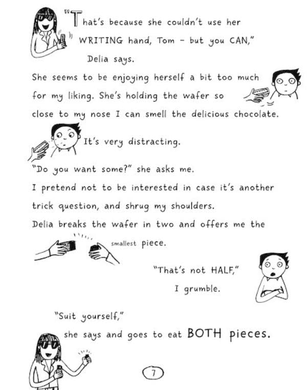 Tom remembers other fun times he's had, like metal detecting with Uncle Kevin and the cousins or inventing a new secret language with Derek. But only ONE thing will cheer Tom up: a caramel doughnut from the new bakery. trouble is, every other kid in town keeps getting there before him! Highlights:
