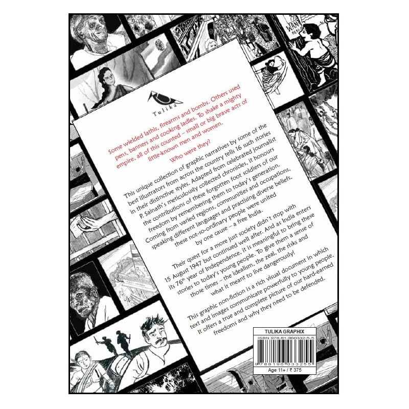 This unique collection of graphic narratives by illustrators from across the country, in their distinctive styles, tells 16 stories of the forgotten foot soldiers of India’s freedom. Adapted from P. Sainath’s meticulously collected chronicles, it honours their contributions. Coming from varied regions and communities, speaking different languages and practising diverse beliefs, these not-so-ordinary people were united by one cause – a free India. This graphic non-fiction is a rich visual document in which text and images communicate powerfully. As India enters its 76th year of Independence, it is meaningful to bring these stories to young people. It offers a true and complete picture of our hard-earned freedoms and why they need to be defended. . illustrated by Aindri C, Allen Shaw, Antara Raman, Anthoni Guruz, Bao, Ikroop Sandhu, Kavitha Balakrishnan, Kripa, Madhuja Mukherjee, Niveditha Subramaniam, Priya Kuriyan, Priyankar Gupta, Rajiv Eipe, Sagar Kolwankar, Satwik Gade, Siddhesh Gautam.