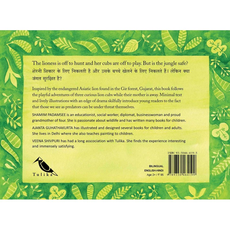 When the lioness goes off to hunt, her cubs go off to play. But is the jungle safe for them? Inspired by the endangered Asiatic lion found in the Gir forest, Gujarat, this book follows the playful adventures of three curious lion cubs while their mother is away. Minimal text and lively illustrations with an edge of drama skilfully introduce young readers to the fact that those we see as predators can be under threat themselves.
